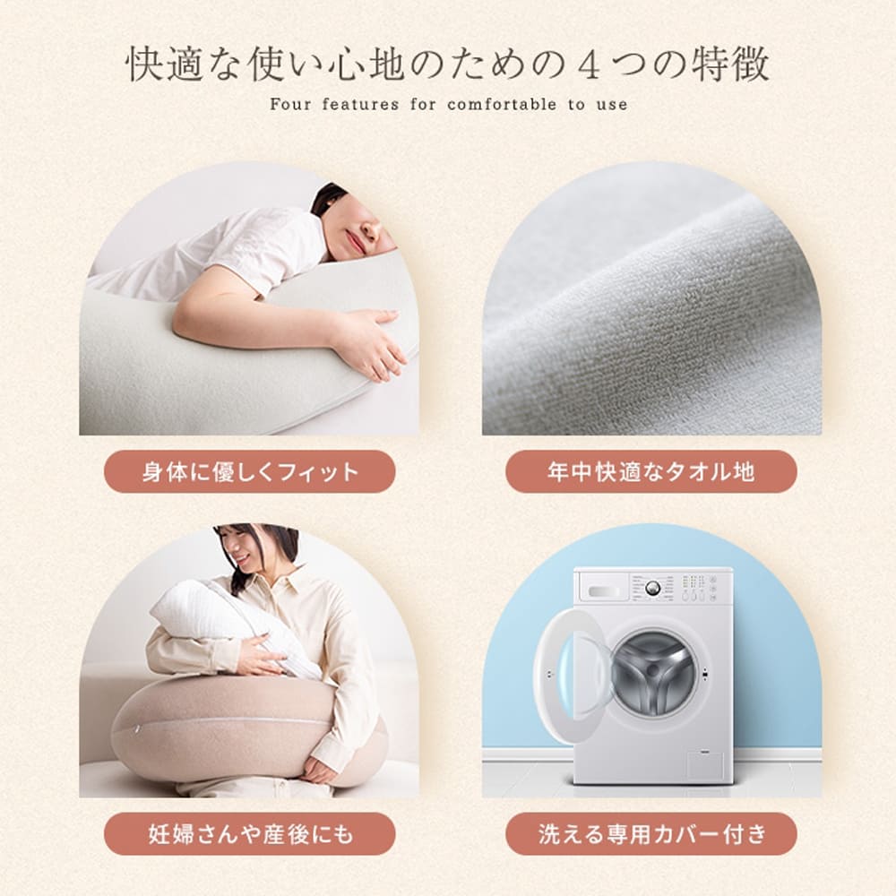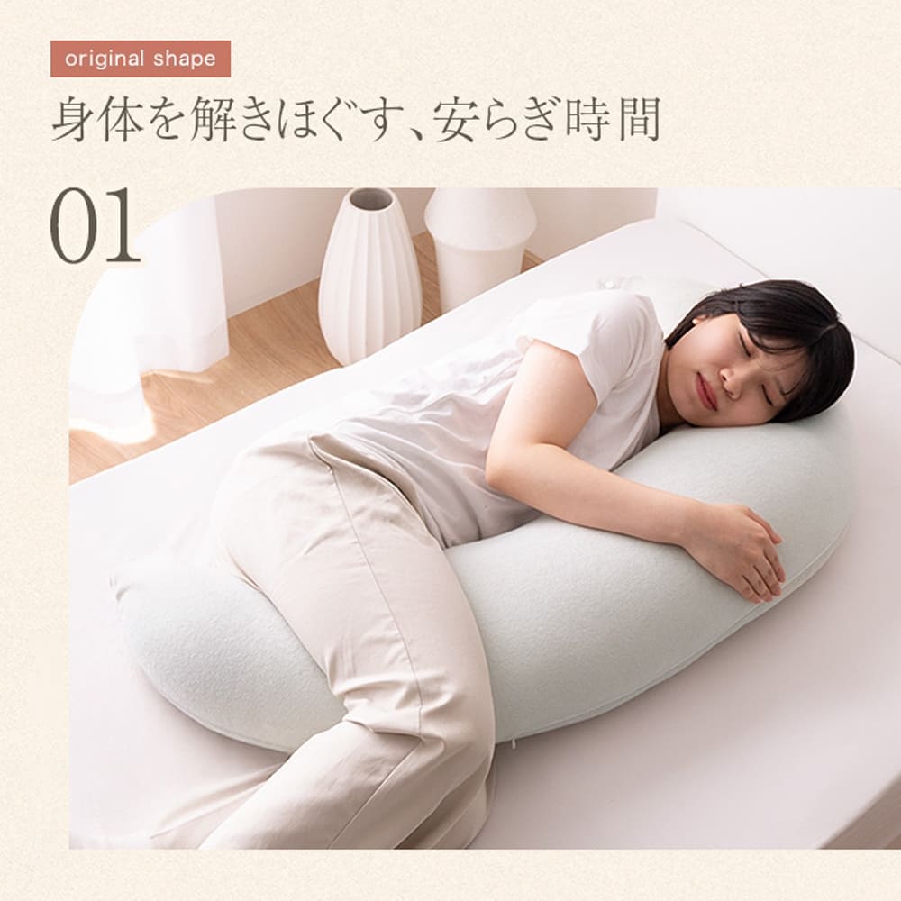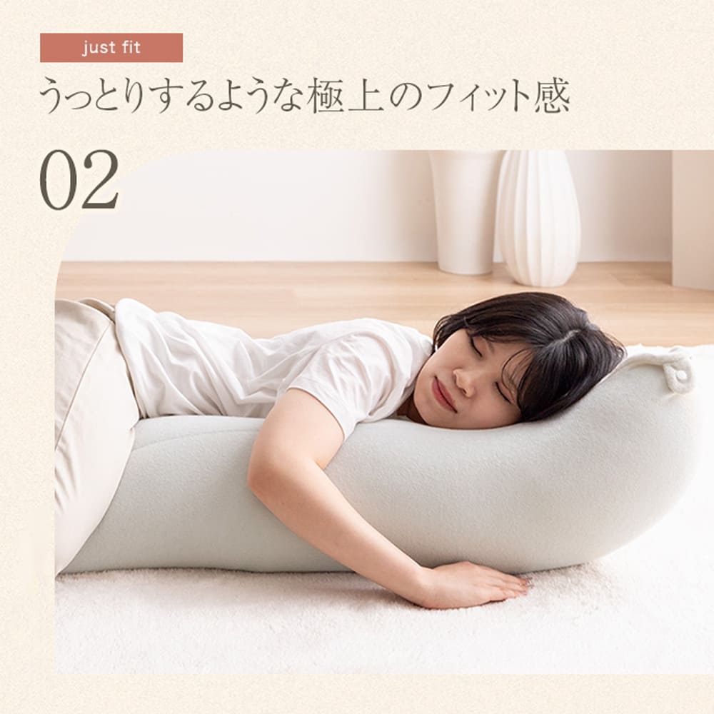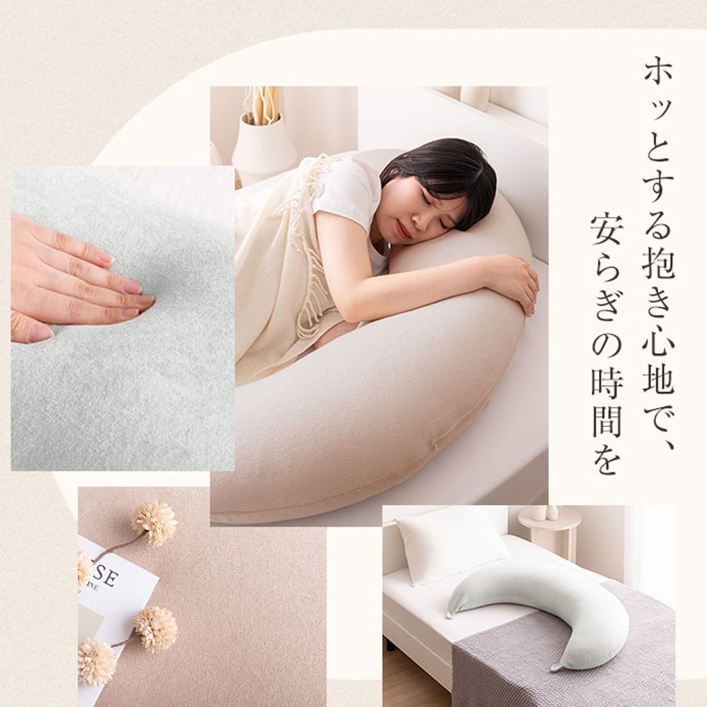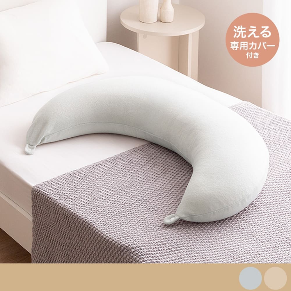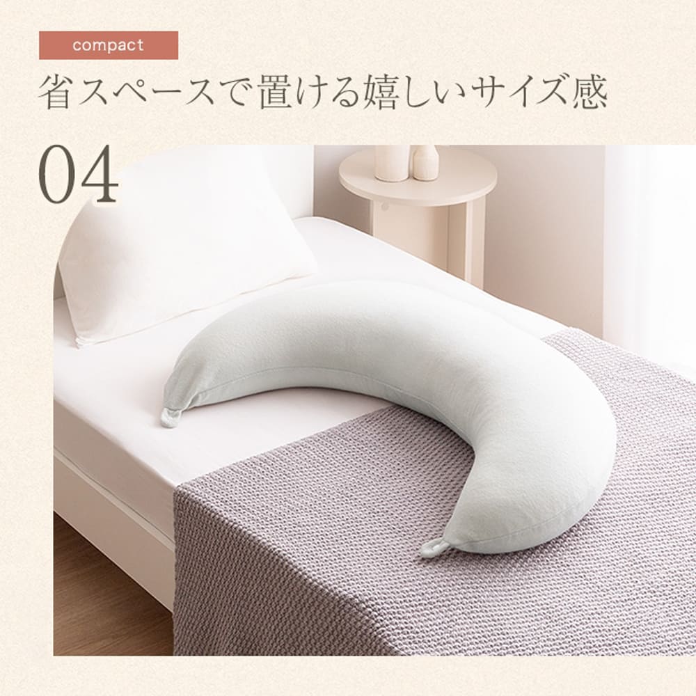 身体に寄り添うようにフィットする『月型形状』はホッと安心感のある抱き心地です。