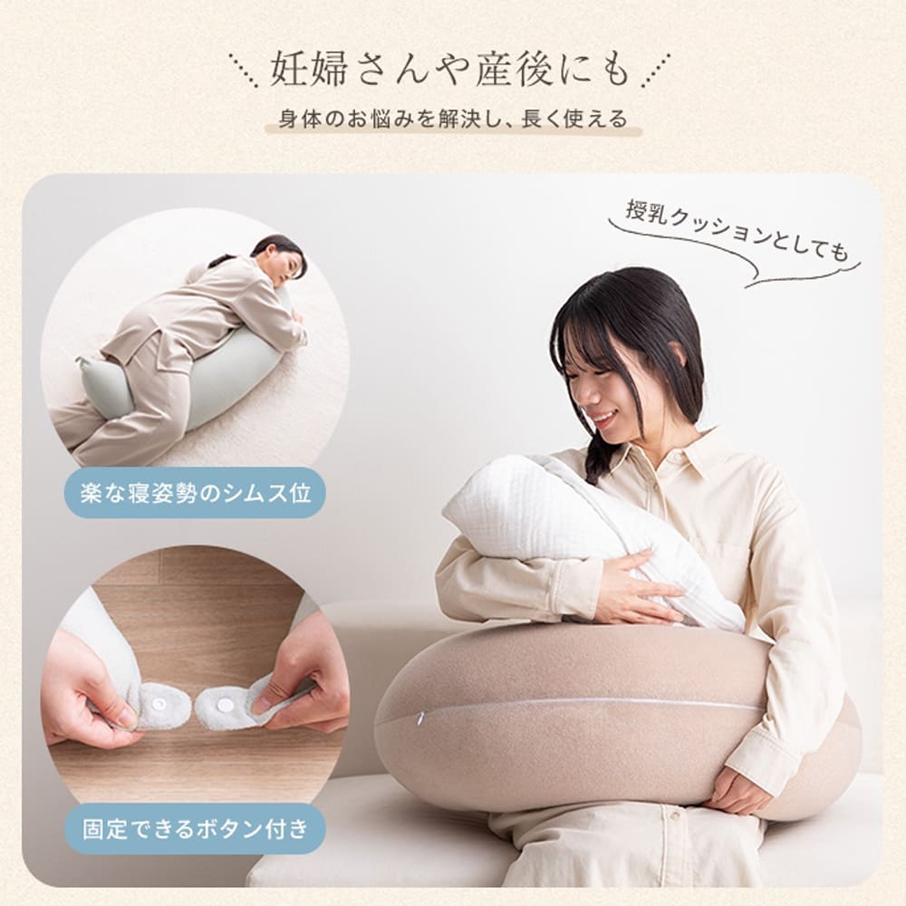また産後は授乳クッションとして使ったり、日常使いもできるので、出産前から産後まで長くお使いいただけるのも嬉しいポイントです。