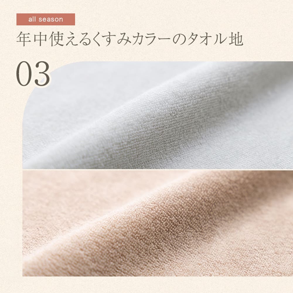 また吸水性と速乾性のあるタオル地は、サラッとした肌触りのいい質感。
