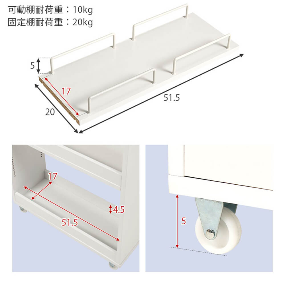 | 備考 | 組立式 キャスター付 可動棚x4枚 ※商品の色味に関してましては、できる限り実物に近くなる様に努めておりますが、ご利用のモニターやデバイスの発色によりまして、実物と異なって見える場合がございます。 |