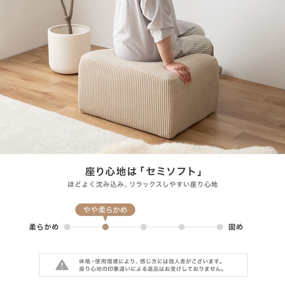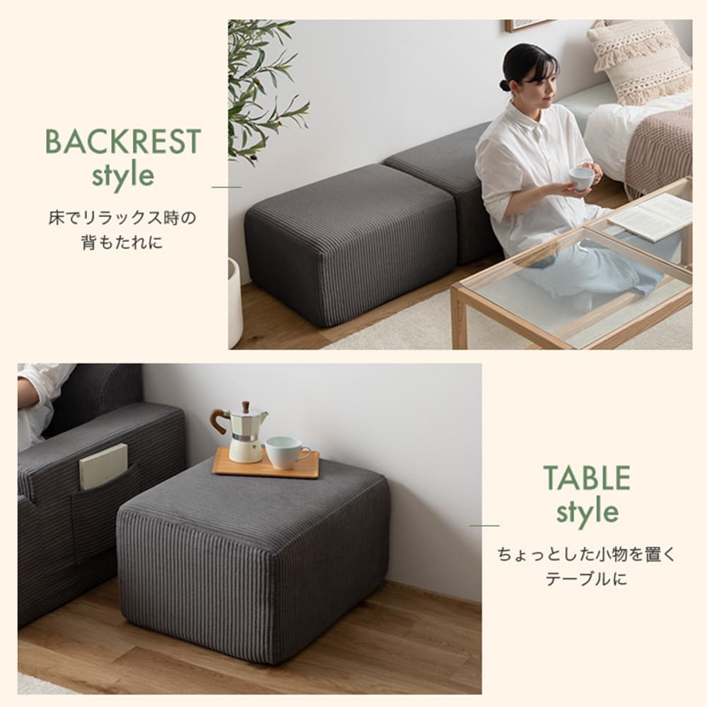 広めの座面としっかり弾力で、座っても足をのばしても心地いい♪お部屋にすっとなじむ、リラックス空間をつくれる多機能アイテムです。
