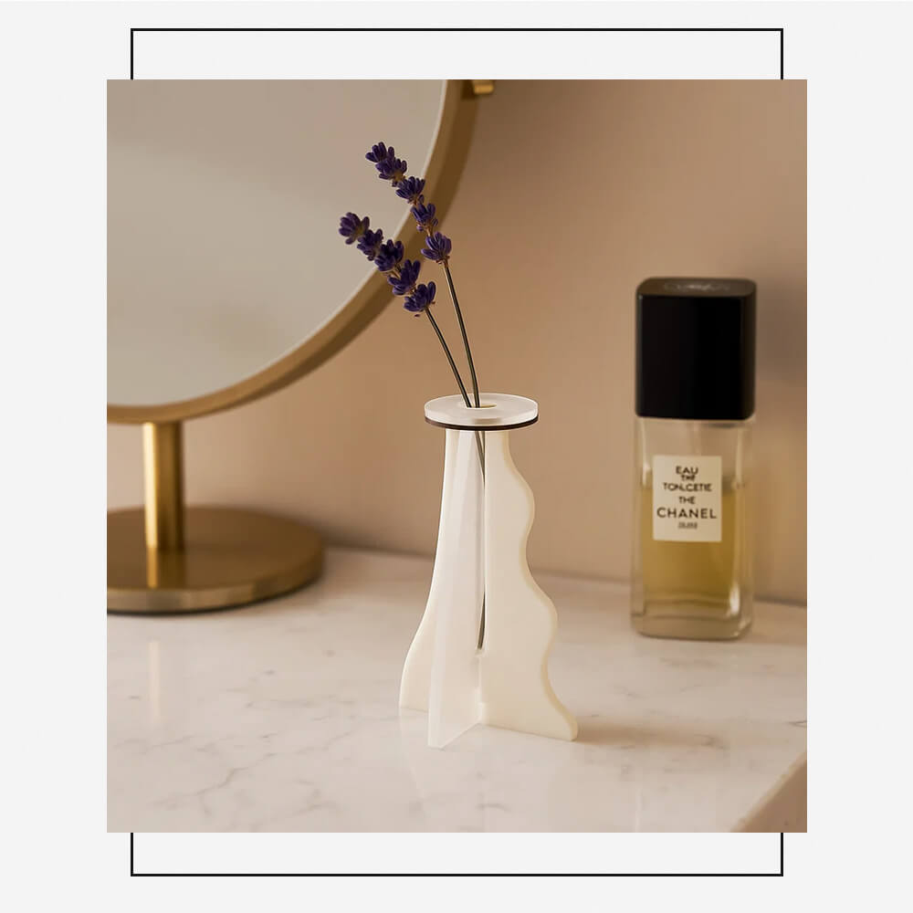木とアクリルのパーツを組み立ててできる一輪挿し