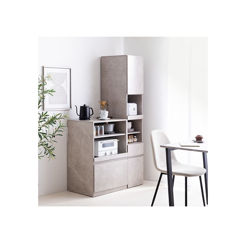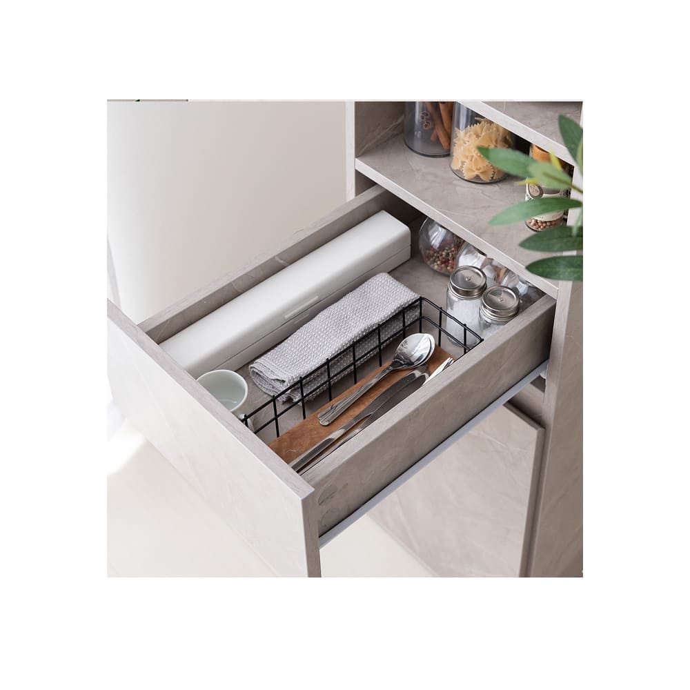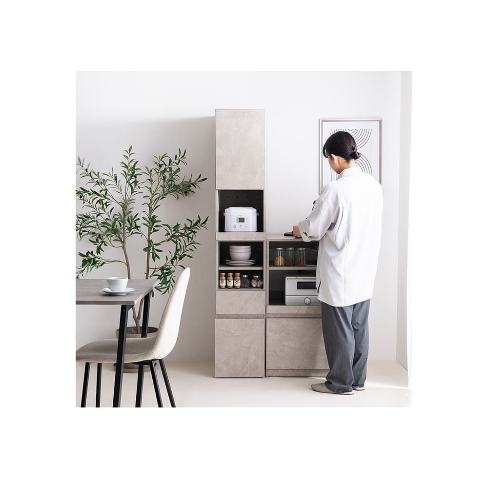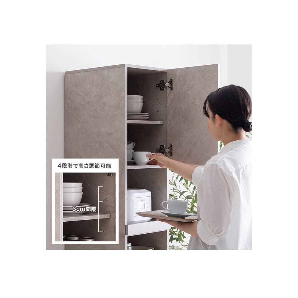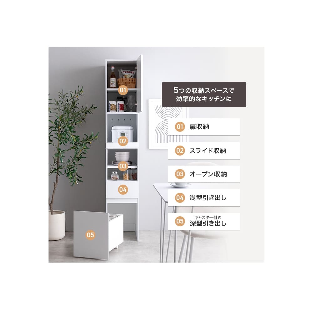 5つの収納スペースを備え、食器や家電、カトラリーや食品ストックまでしっかり整理整頓。