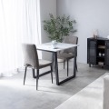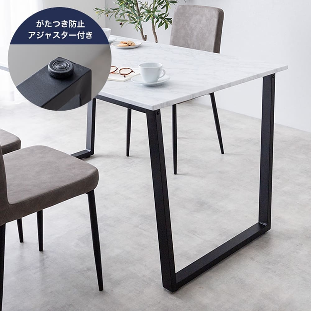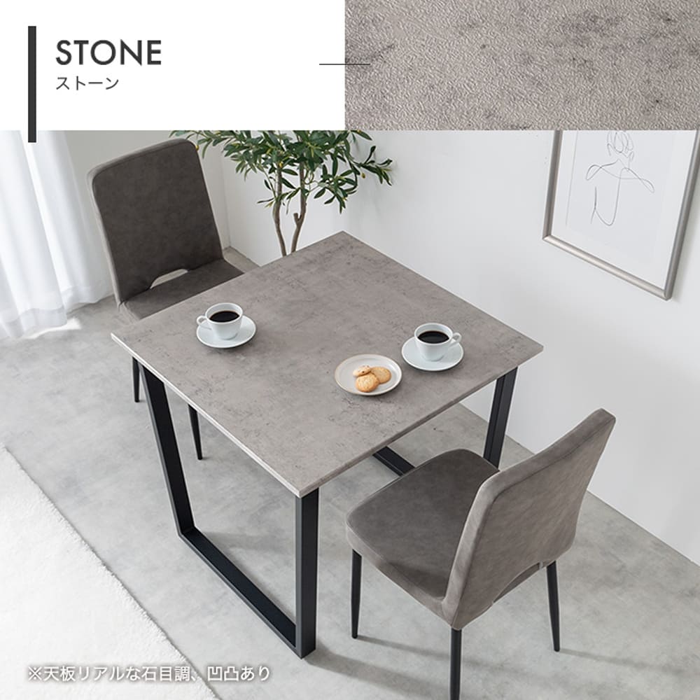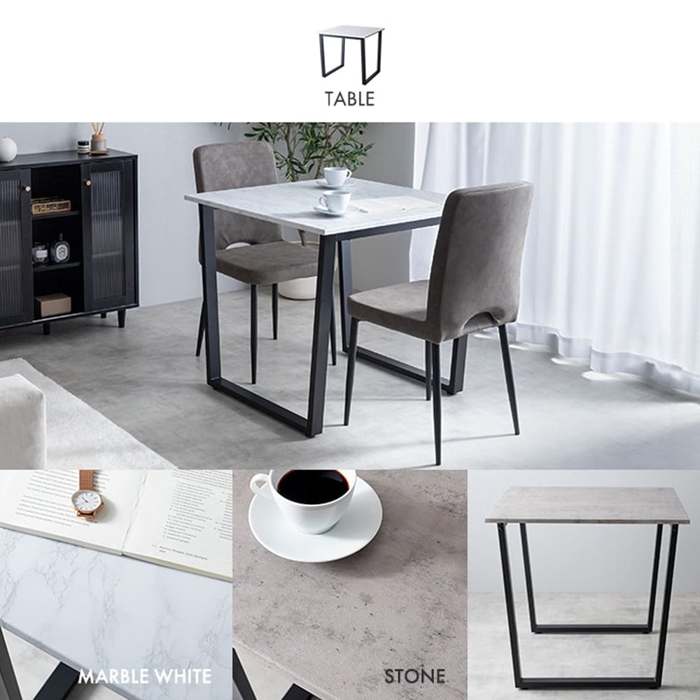 石目調天板とブラックスチール脚の組み合わせがモダンで上品な印象に。