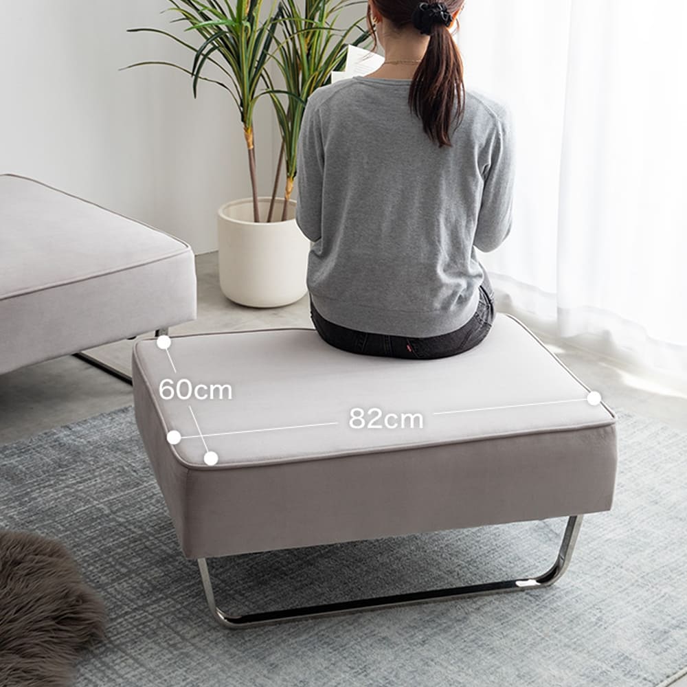 幅82cm×奥行60cmの広々とした座面は、足を伸ばしてくつろげるだけでなく、スツールやちょっとしたテーブル代わりにも。
