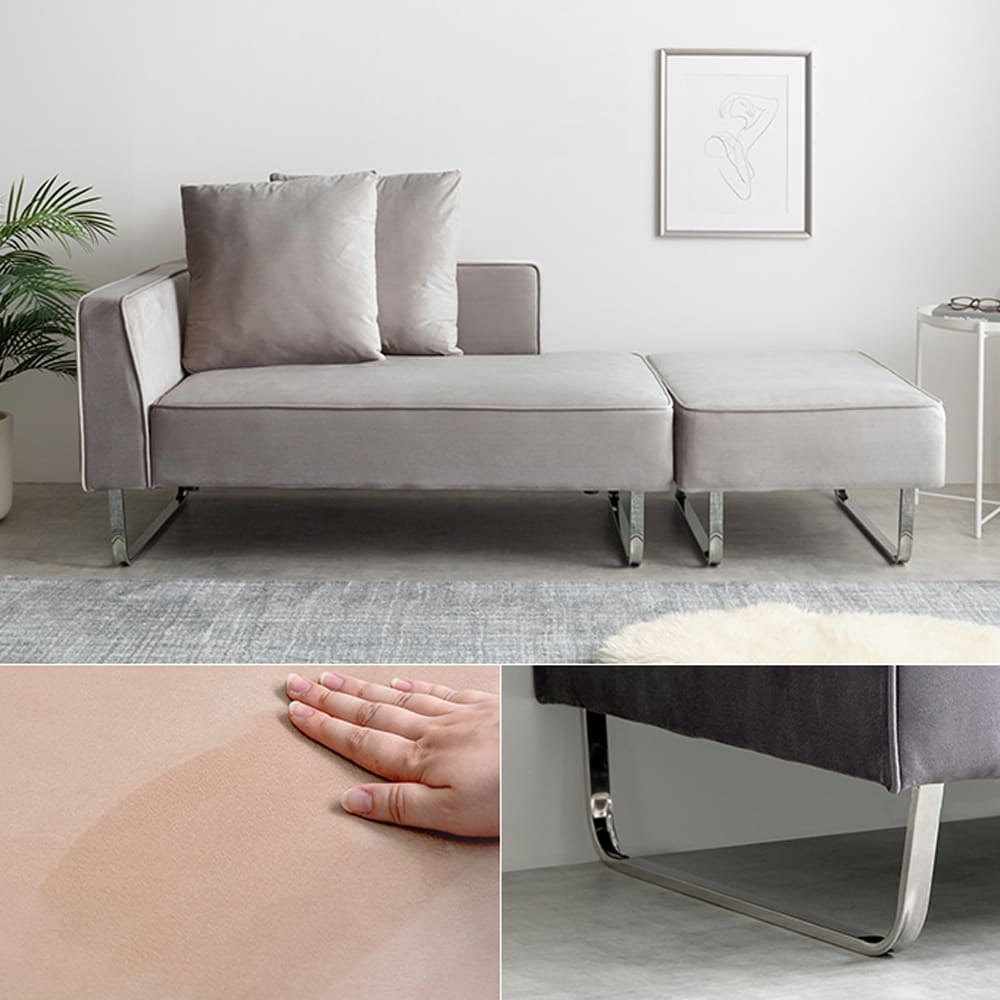 Tilleul(ティユール)ソファ&オットマンセットは、上質なベロア生地と洗練されたシルバーフレームが魅力。