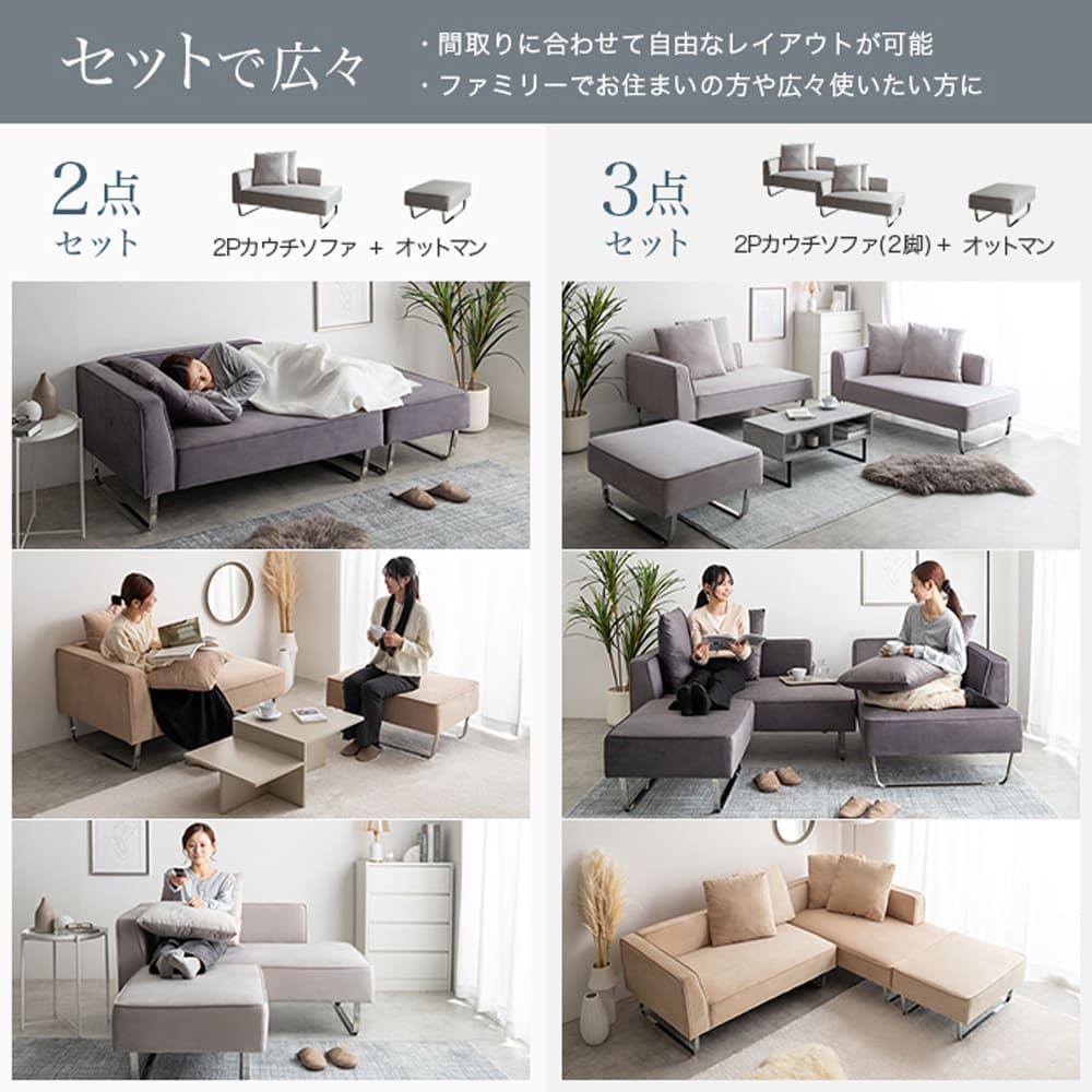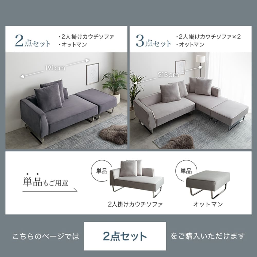 こちらは2点セット(ソファ+オットマン)の商品ページとなります。