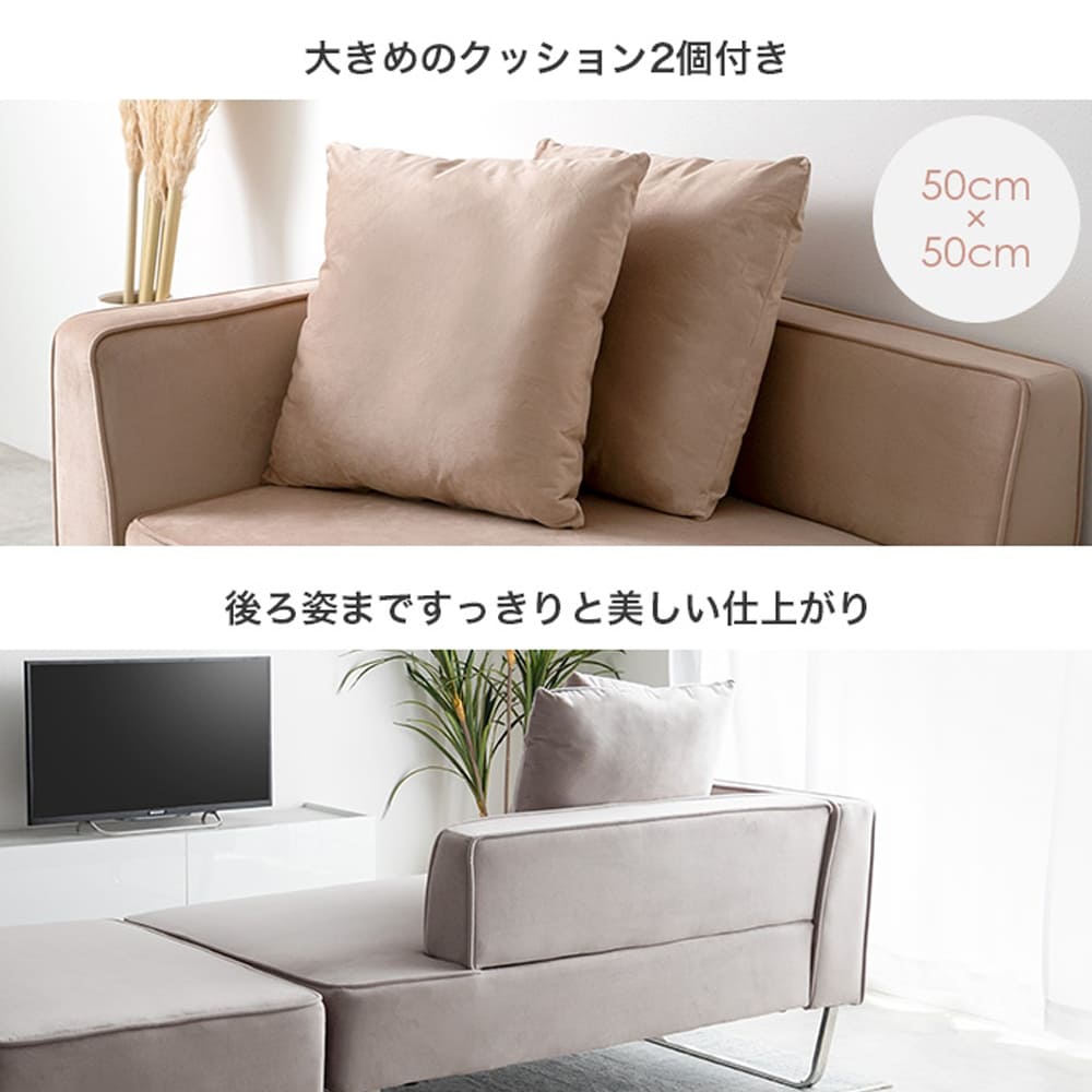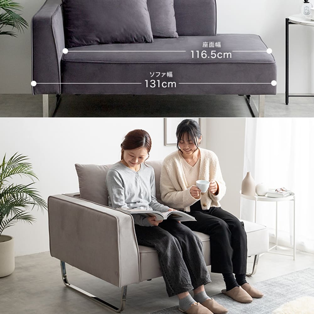 幅131cmのソファと広々とした82cm×60cmのオットマンは、リビングはもちろんワンルームやマンションでも使いやすいコンパクトサイズ。