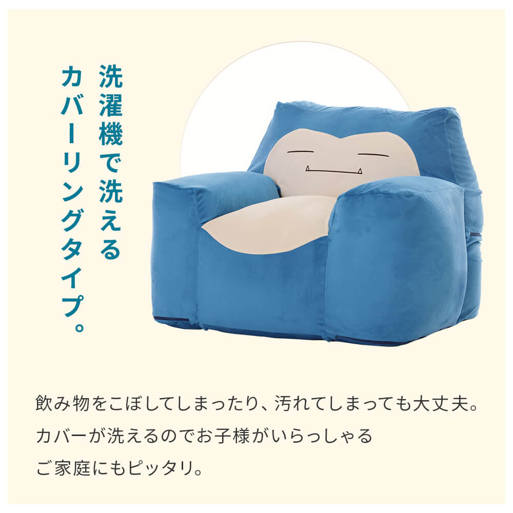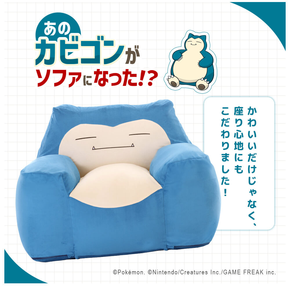 まったり癒し系ポケモン「カビゴン」が、かわいくて実用的なソファになって登場!もっちり包み込まれるような座り心地と、インテリア映えするデザインが魅力。