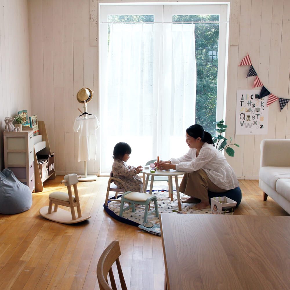玄関やリビング、キッズスペース、子ども部屋など、どこでも使いやすく、お子さまの「自分でやりたい!」気持ちを応援する家具です。