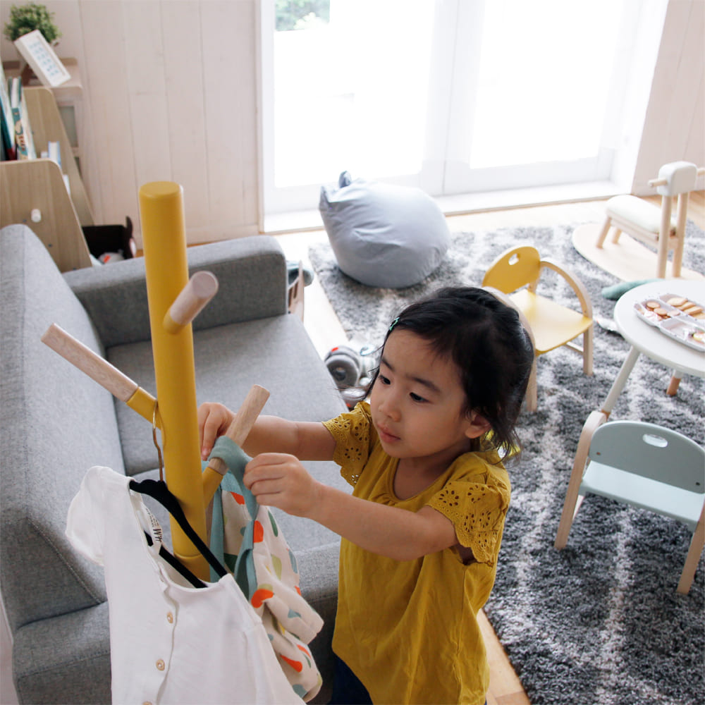 子どもの「自分でできた!」を育てる北欧風ポールハンガー。