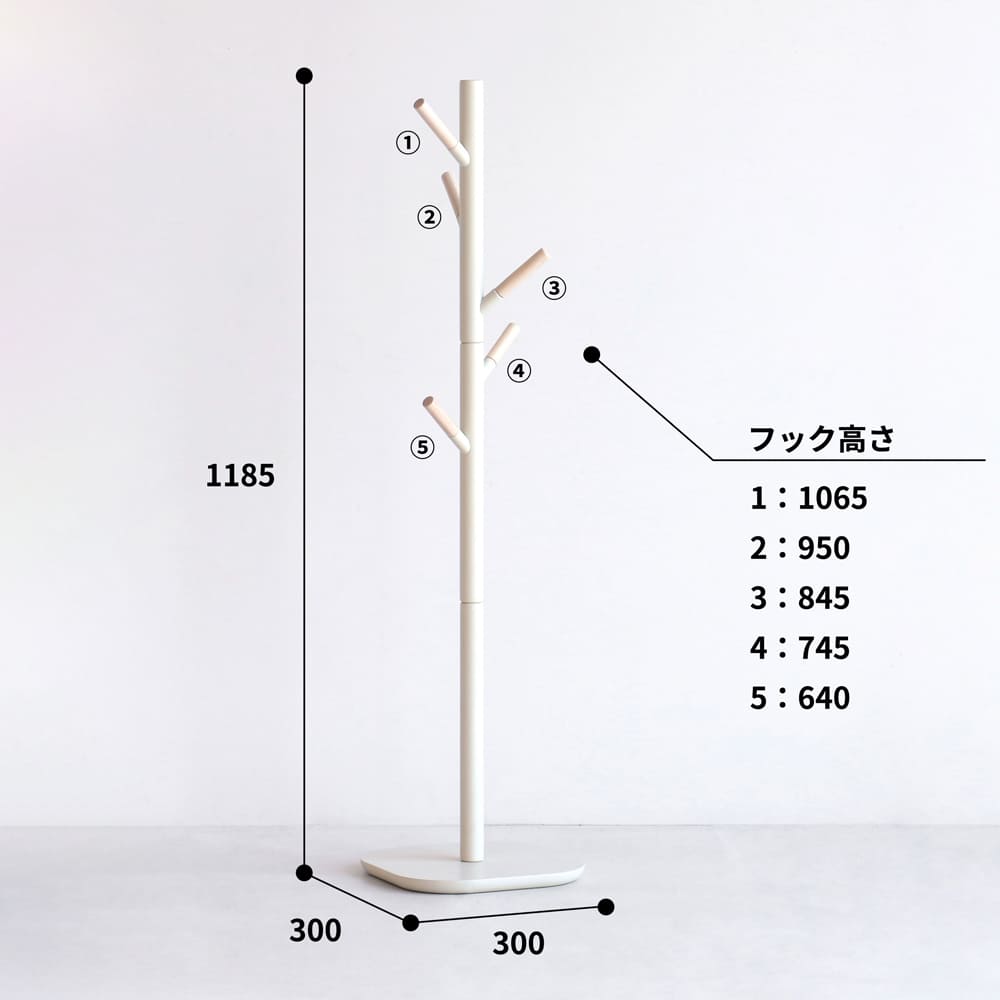 | 素材 | 支柱/フック:天然木(ラバーウッド材) 土台:繊維板 ラッカー塗装 |