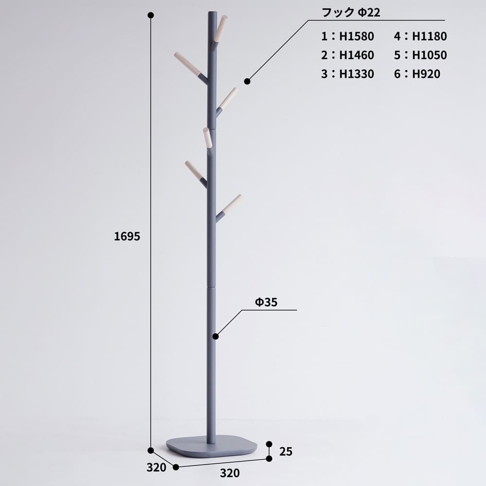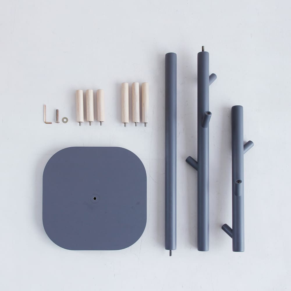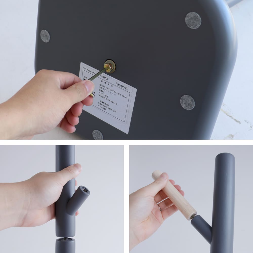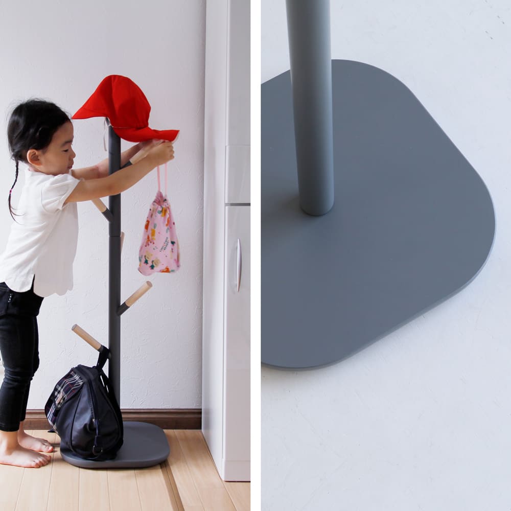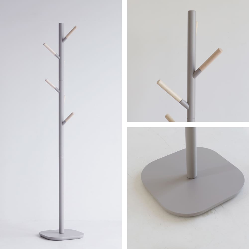 | 素材 | 支柱、フック:天然木(ラバーウッド) 土台:合成樹脂化粧繊維板(メラミン) ラッカー塗装 |