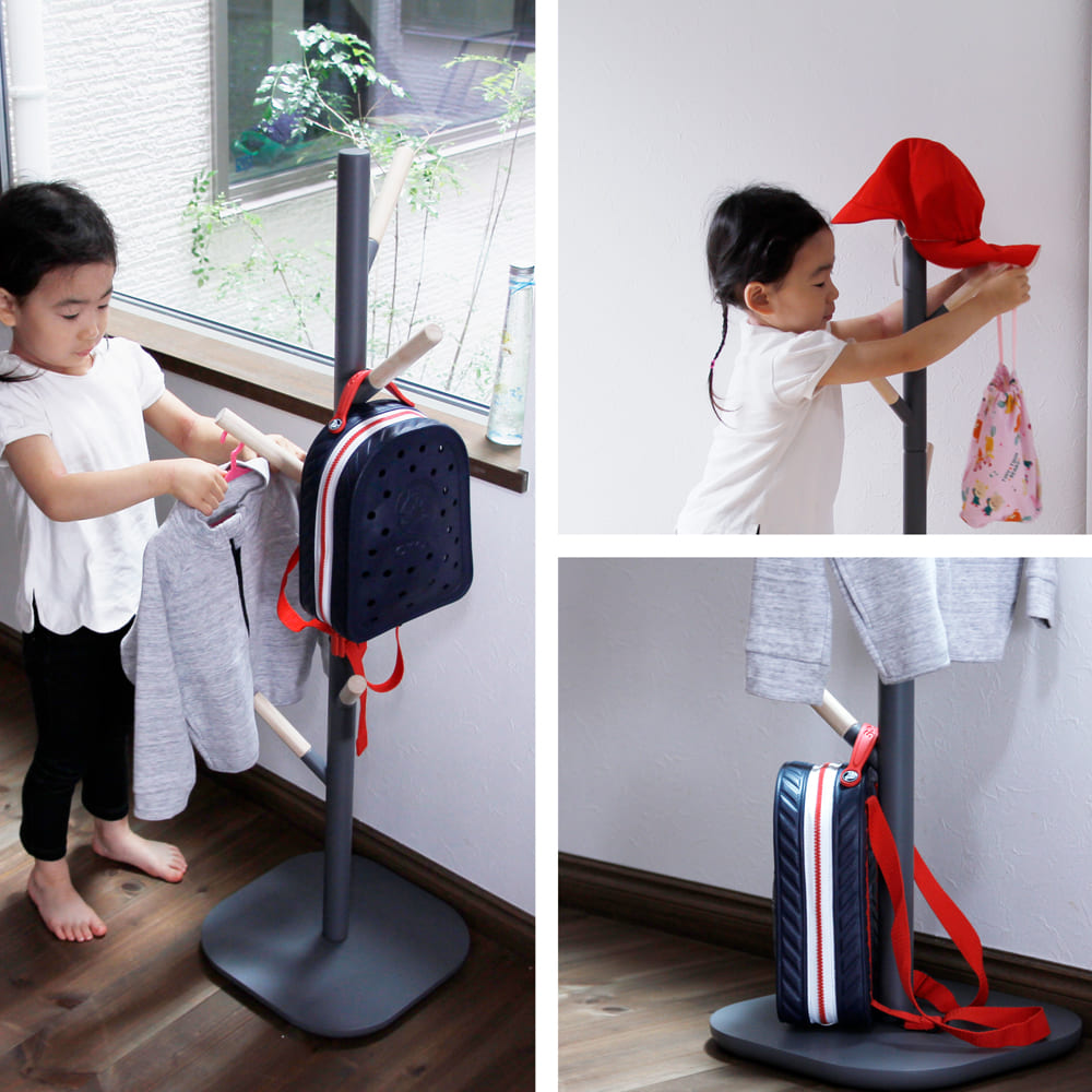 一番下の支柱を取り外せば、こども用のポールハンガーとしてもお使いいただけます。