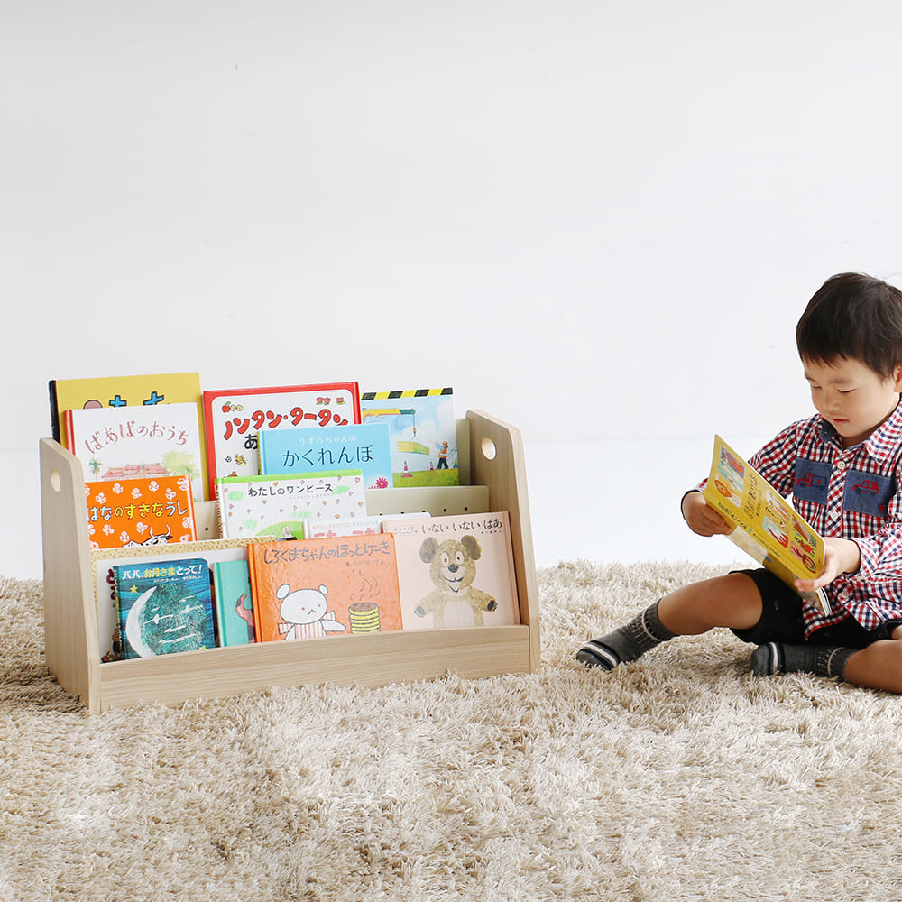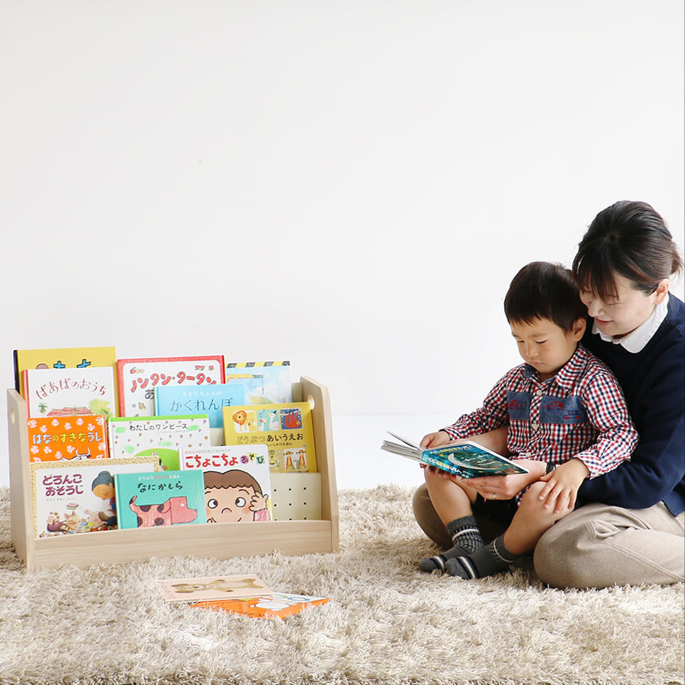 毎日の「読みたい」「片付けたい」をサポートしながら、語彙力や想像力、親子のふれあい時間も自然と育まれる、優しい知育家具です。