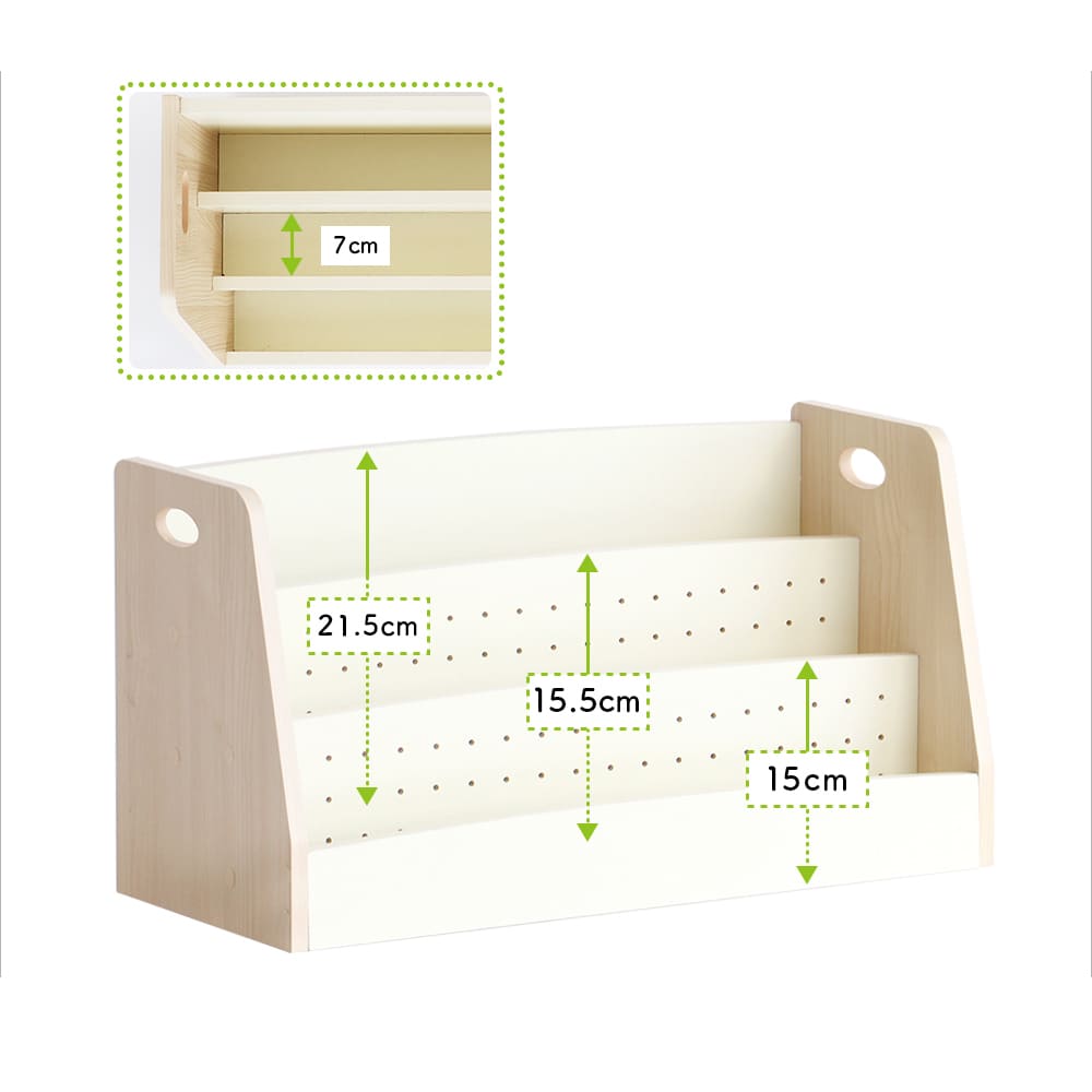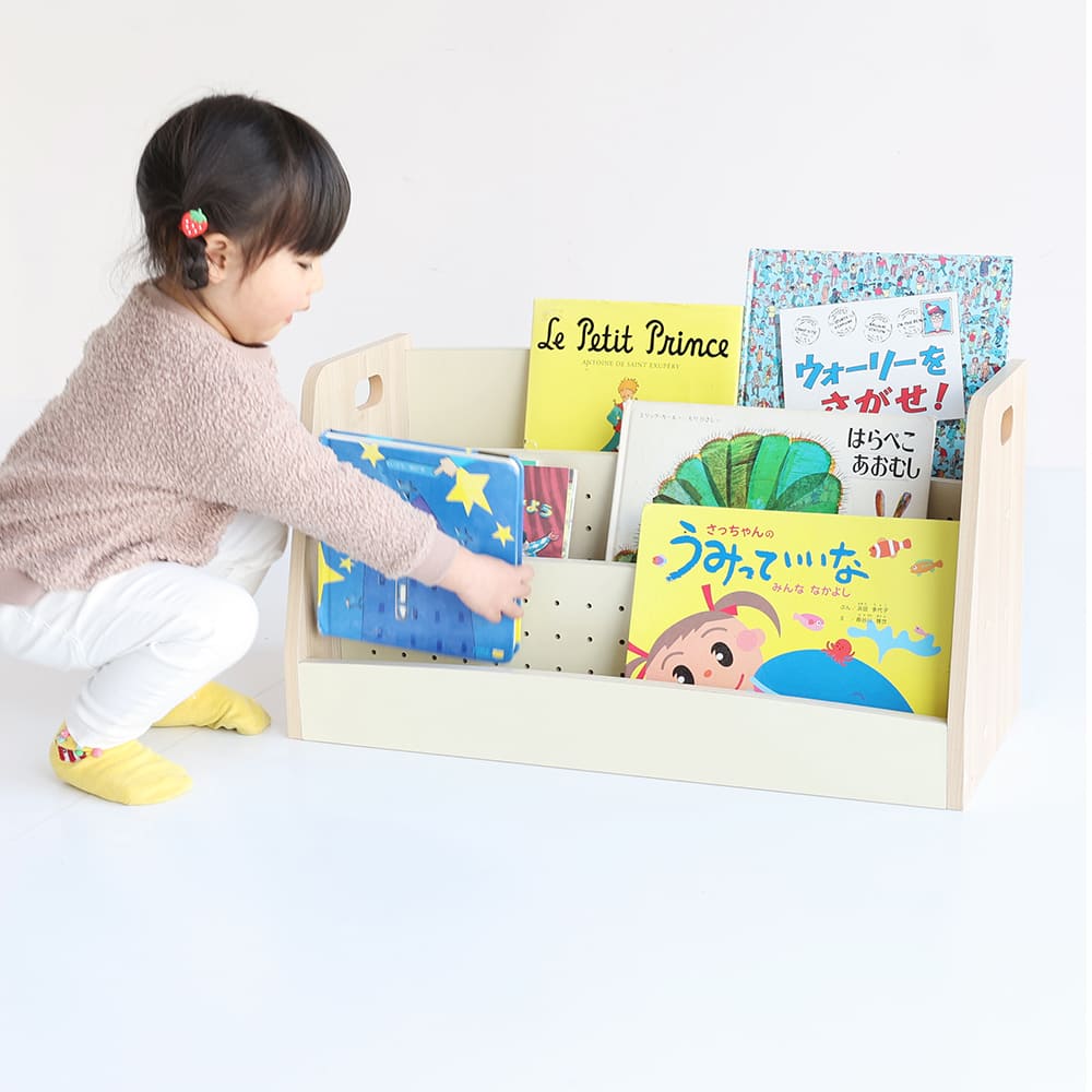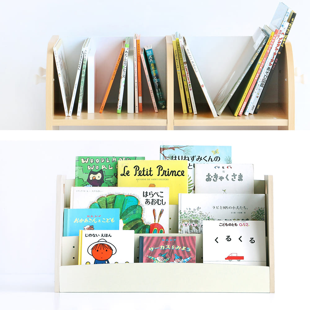 絵本のサイズに合わせてすっきり整理でき、子ども部屋はもちろんリビングや玄関先のインテリアにもぴったり。