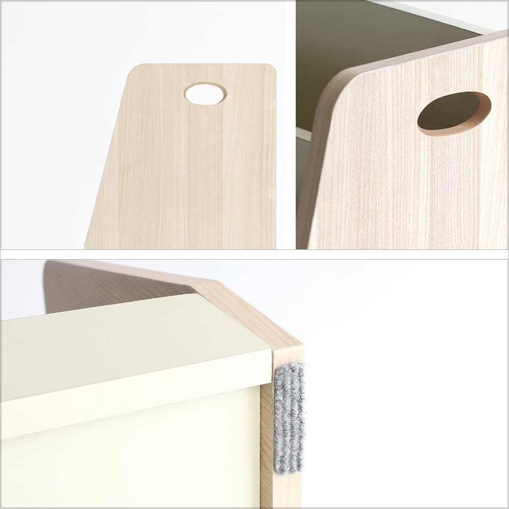 角を丸めた安全設計とフェルト付きで、床を傷つけにくく安心して使えます。