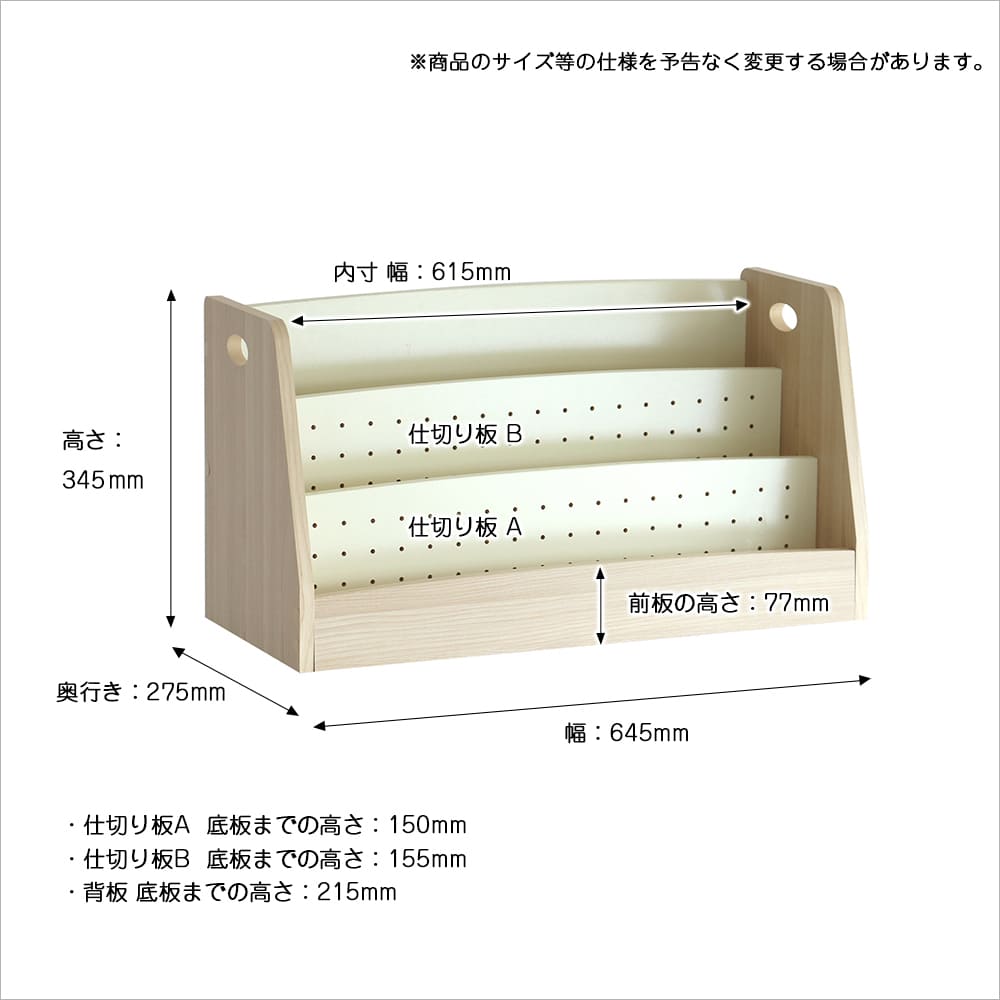 全体の高さは約35cmと低く設計されており、子どもが自分の手で絵本を取って戻せる高さ。