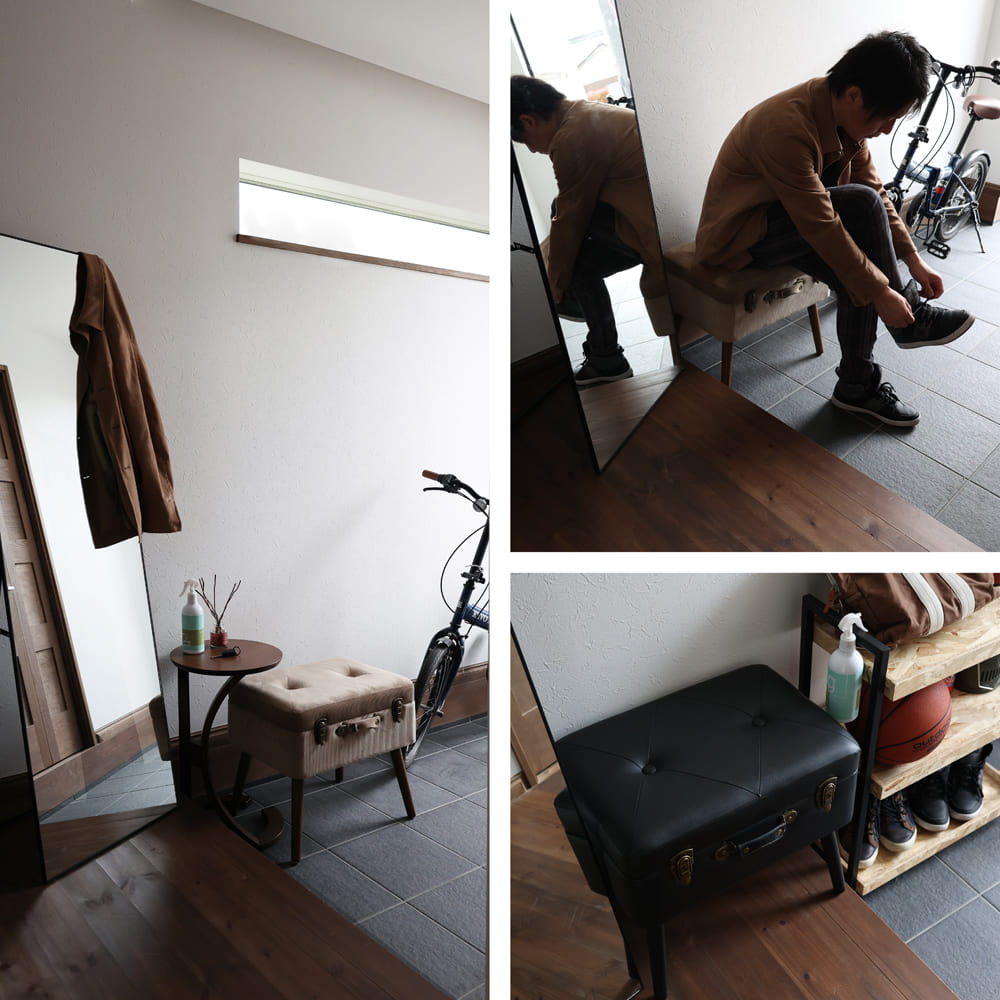 鏡の前など1日の中で使用時間の少ない場所に、スツールを置けばワンルームでも空間を有効活用できます。