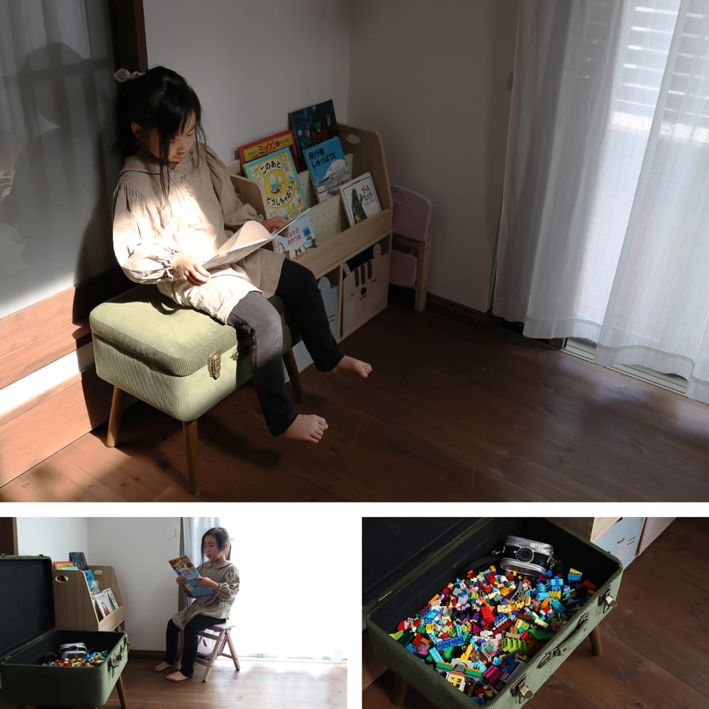 トランクとしておままごとに使ったり、子供が自ら考えて遊び学べるスツールです。
