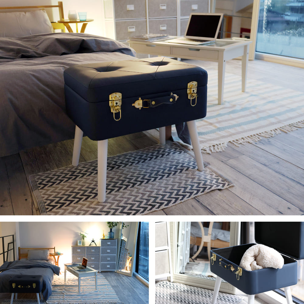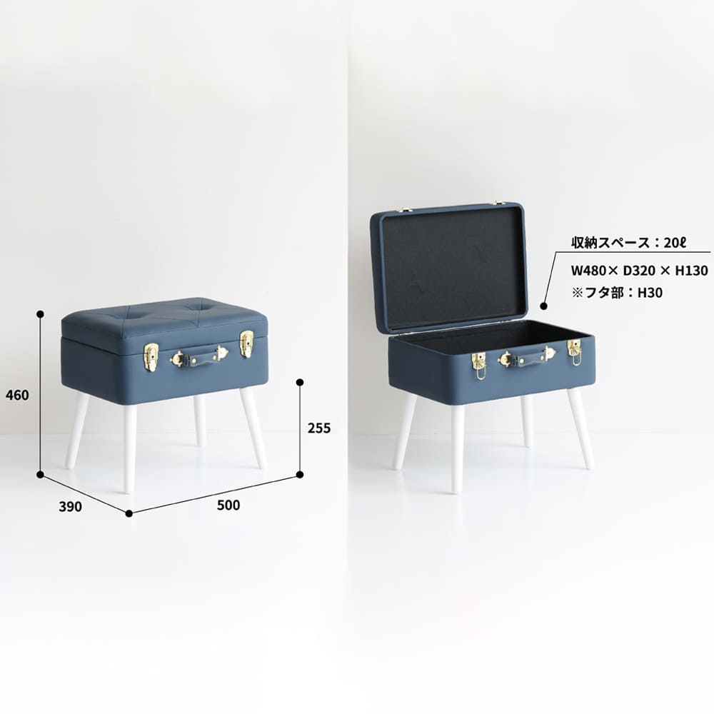 収納付きという機能性はもちろん、他にはないトランク型のオシャレなデザインも多くのみなさまに愛されているポイントです。