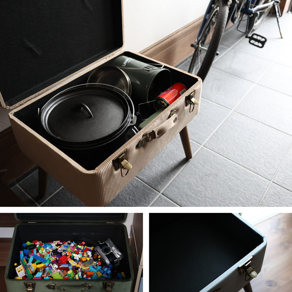 本物のトランクのようなデザインで、部屋のインテリアとして映画のワンシーンのようにコーディネートすることができます。
