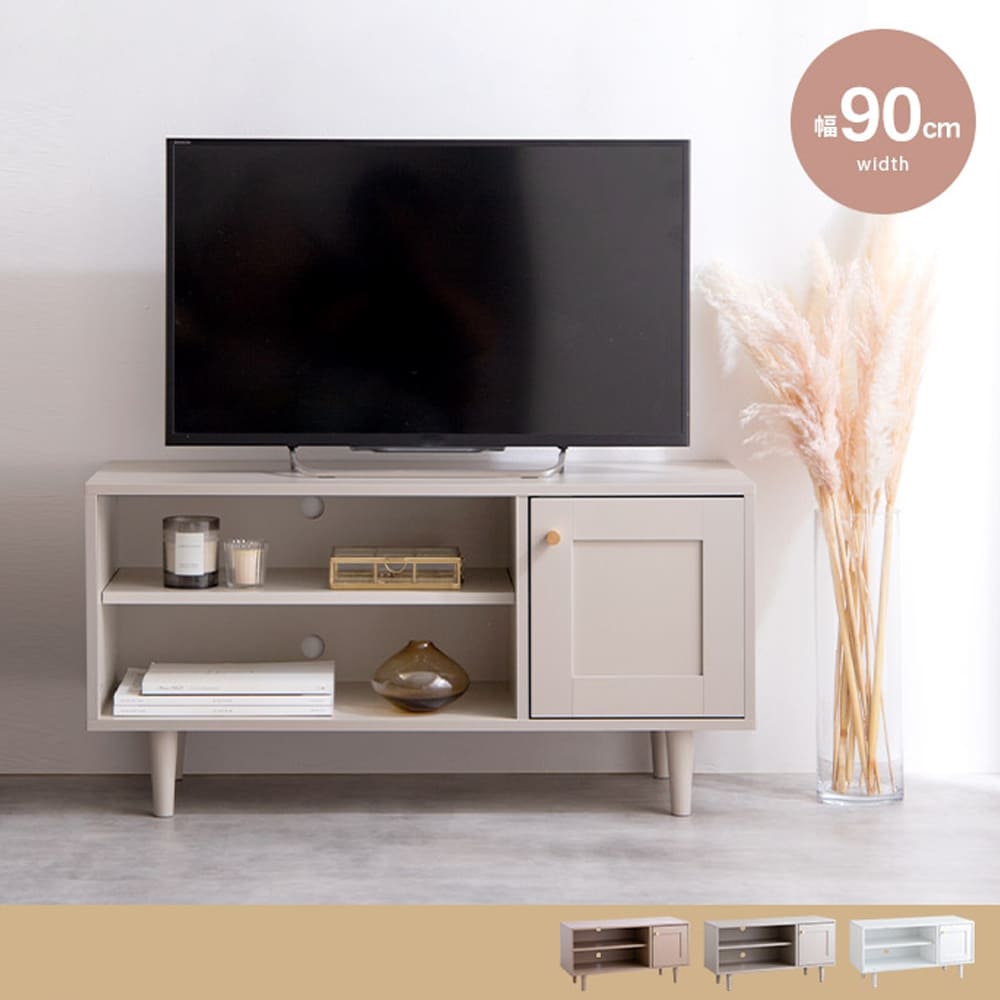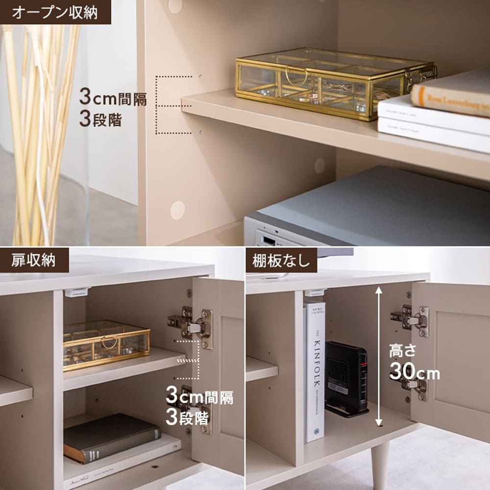幅90cmとコンパクトながら、オープン収納+扉収納のダブル構造で収納力もばつぐん。