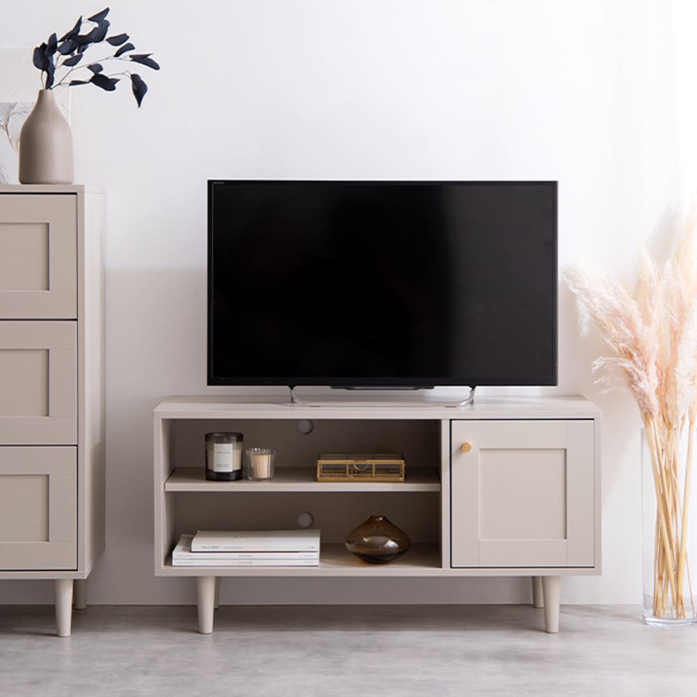 になったテレビ台。甘すぎないニュアンスカラーとシンプルなデザイン