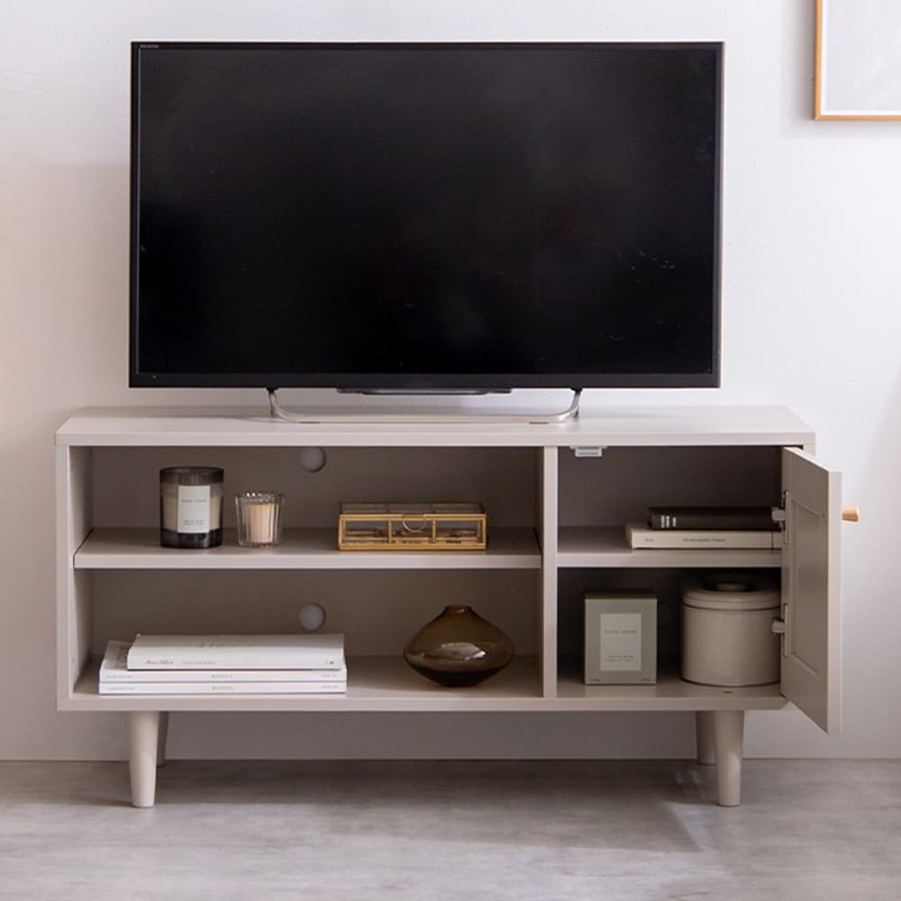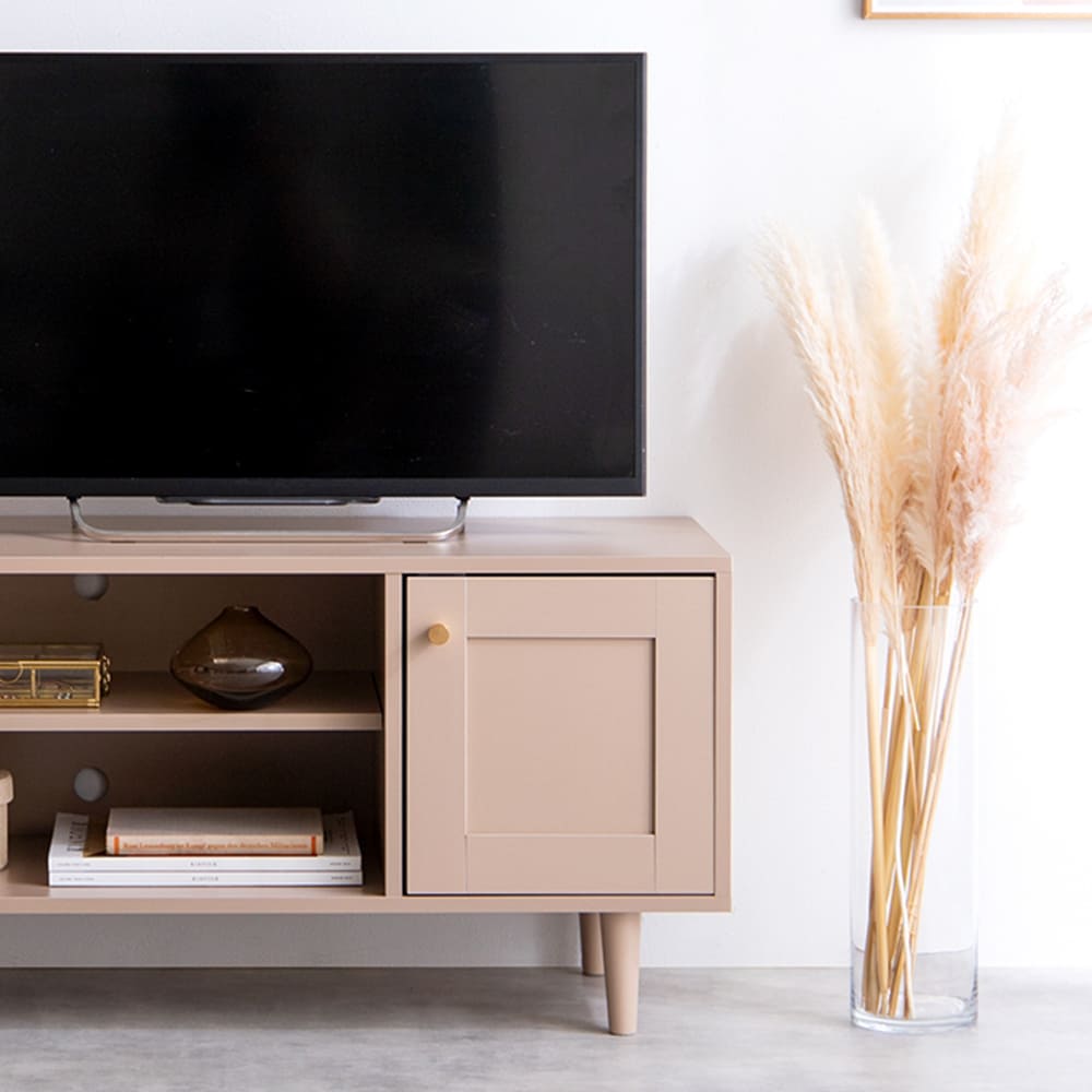 カラーが、甘すぎず落ち着いた印象を与えるテレビ台。海外インテリアの