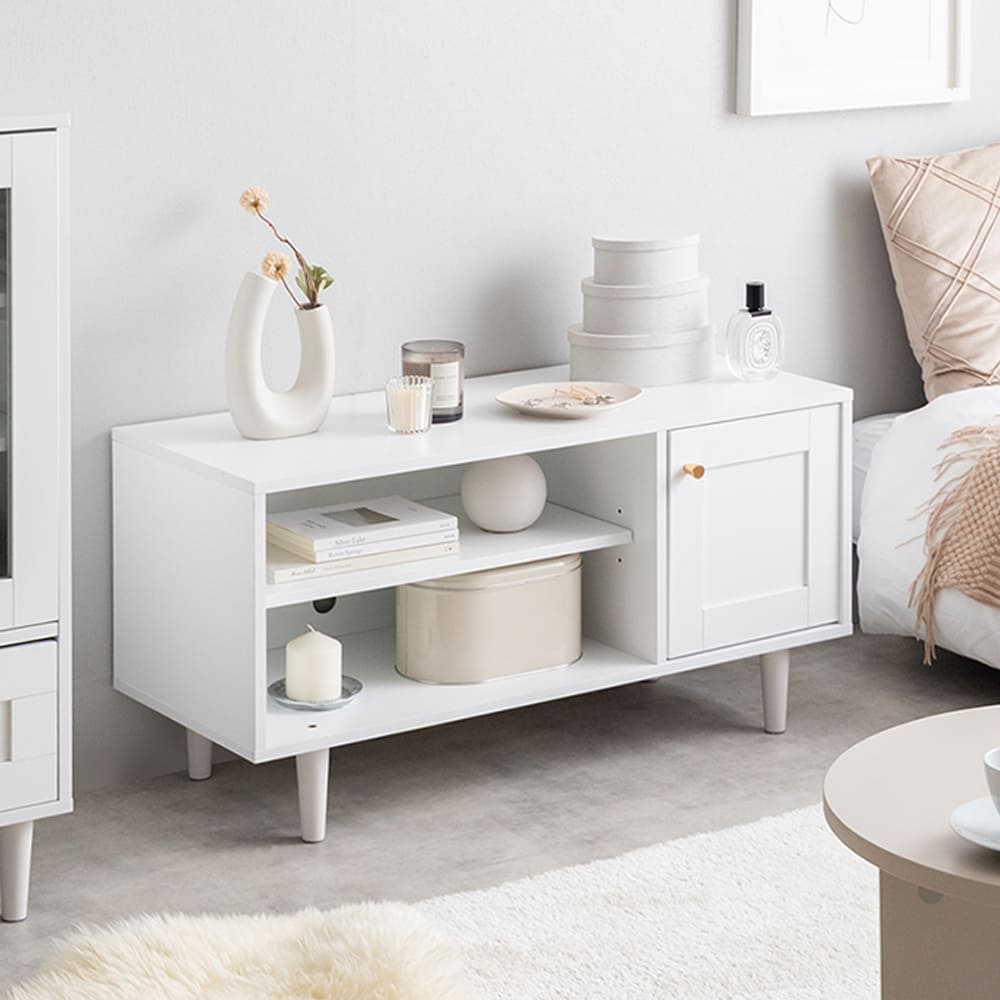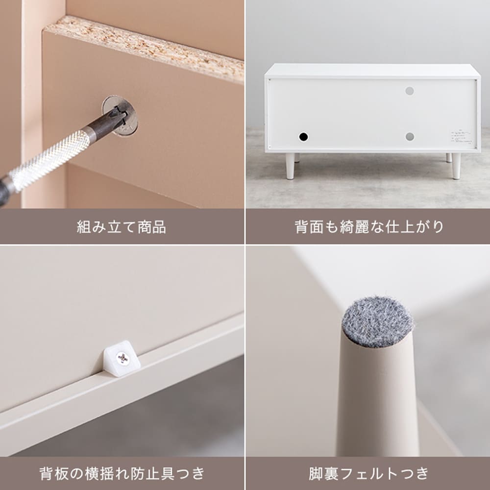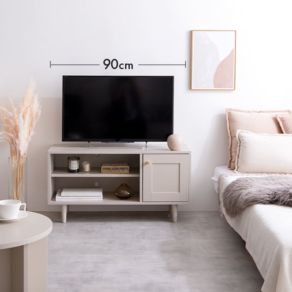 一人暮らしやワンルーム、狭めのリビングにもぴったりのサイズ感で、テレビ台としてはもちろん、おしゃれなディスプレイボードとしても活躍。