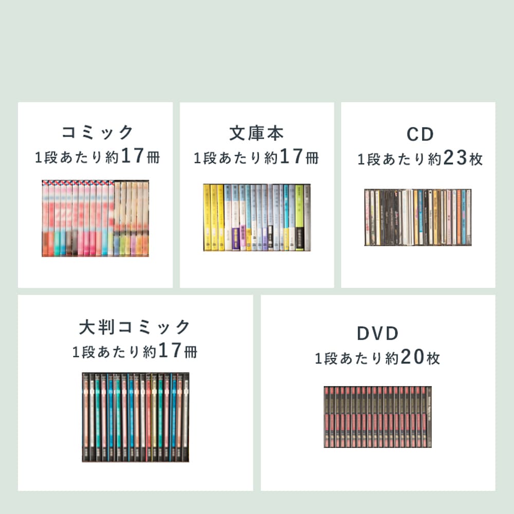 棚の高さを変えるとCDから大判コミックまで収納できます