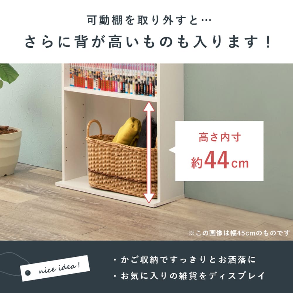 棚板は可動式で、高さ約44cmのかごや雑貨の収納にも使えます。