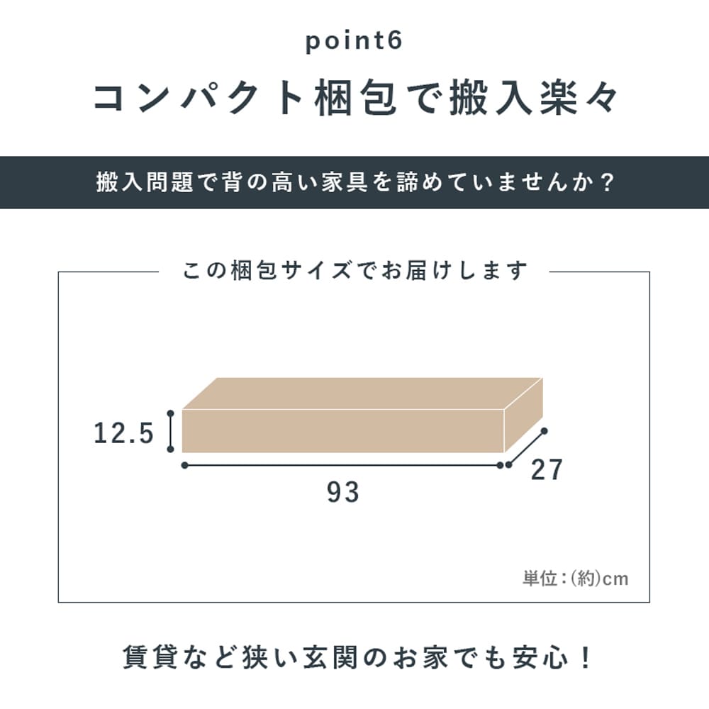 組み立ては上下2分割式なので、大型家具でも簡単に組み立てができ、賃貸でも安心のコンパクト梱包でお届け。