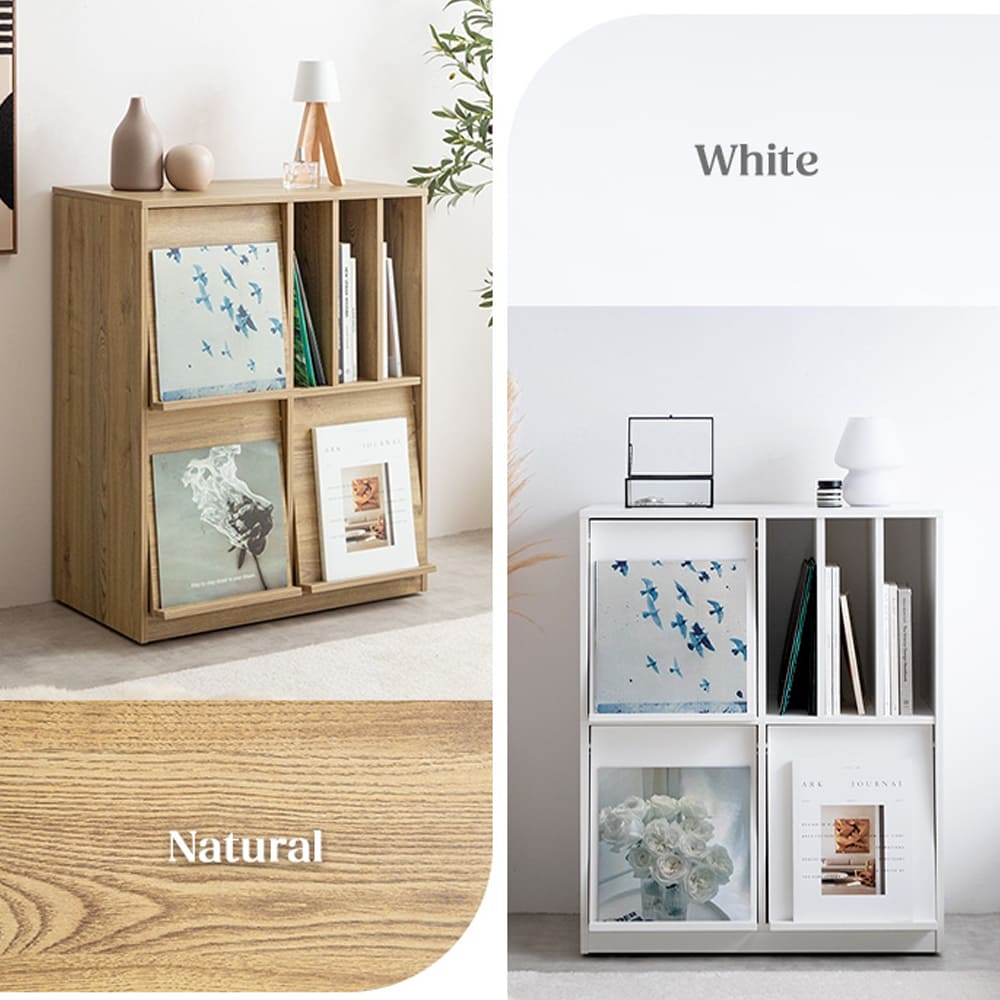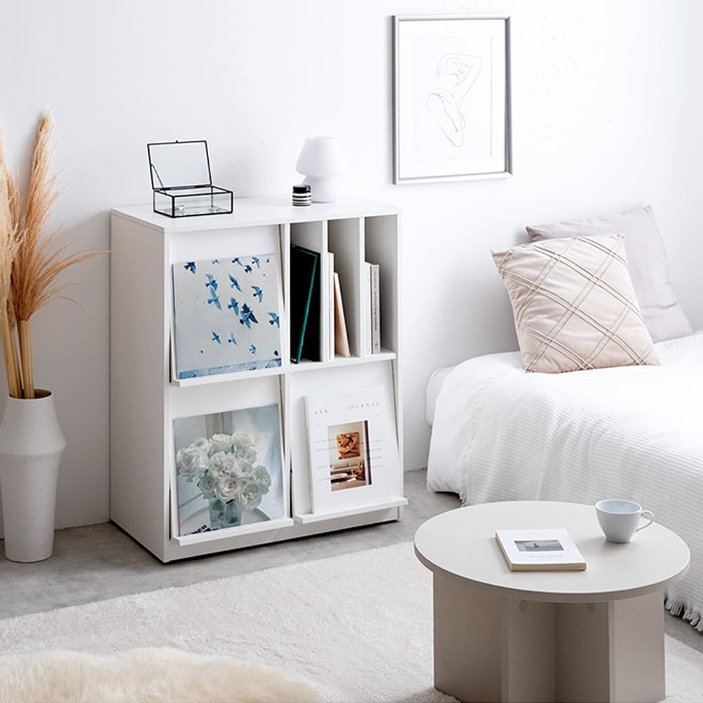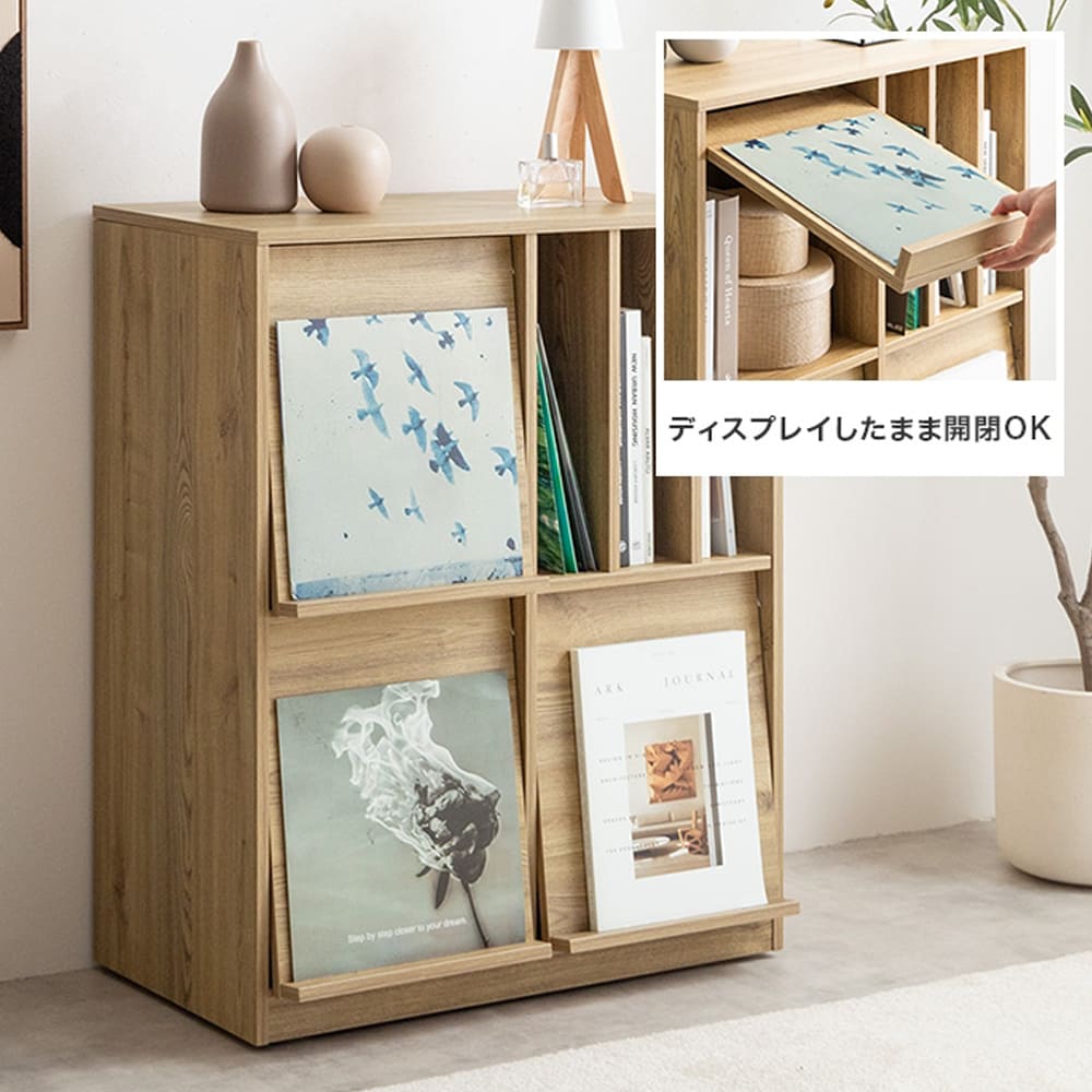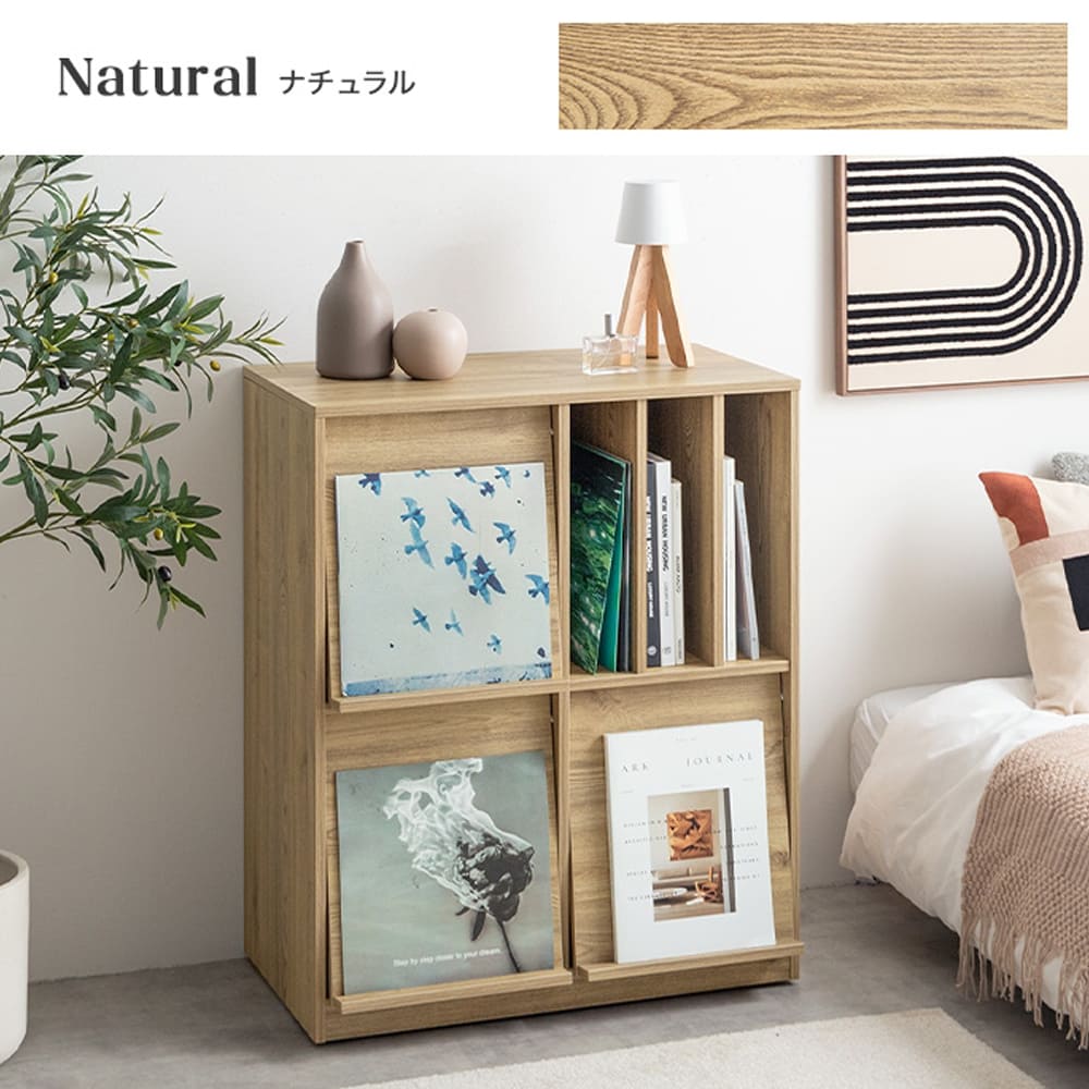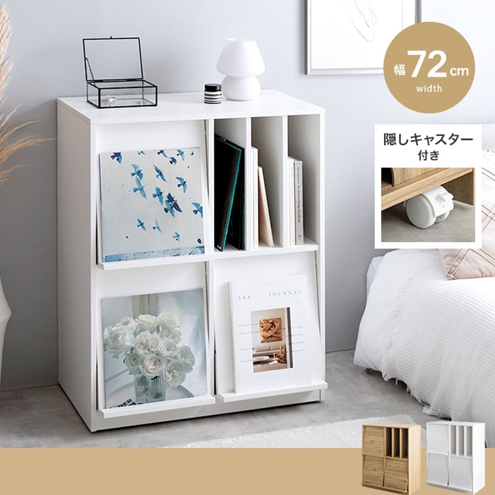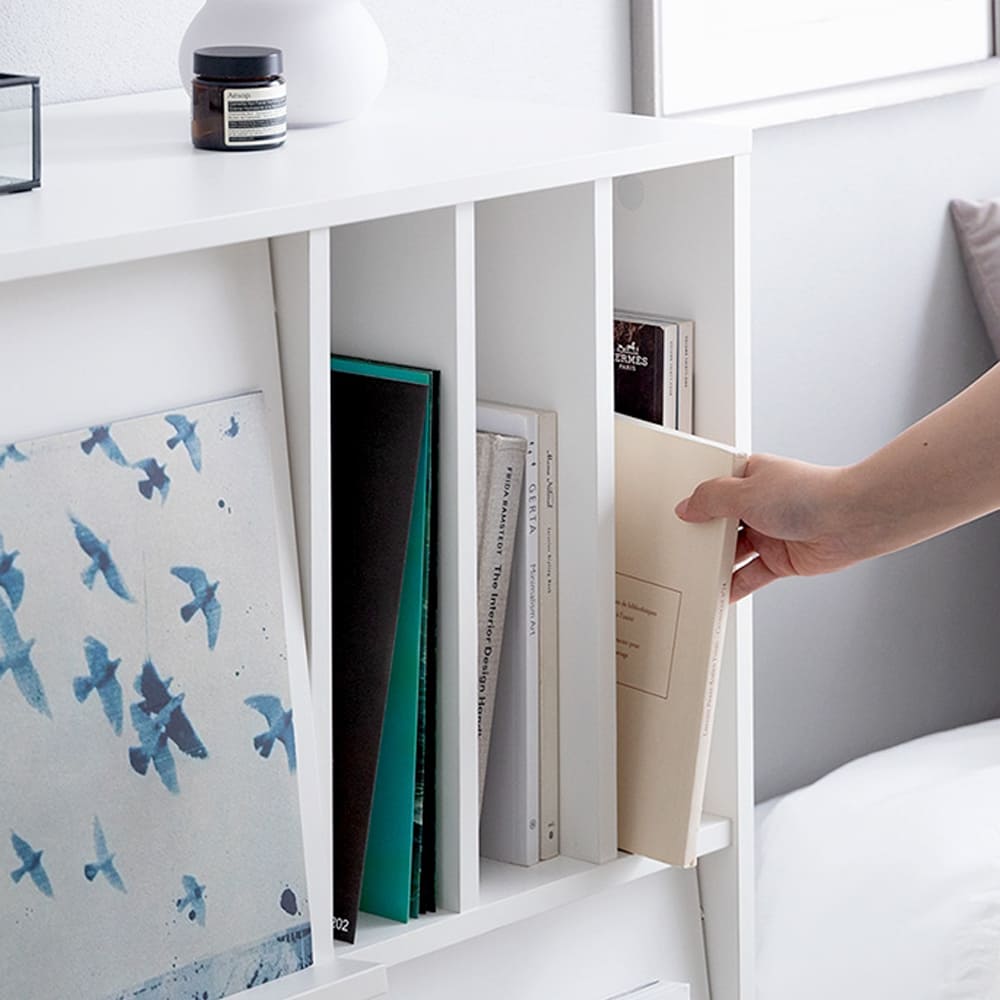 スリット収納も便利で、雑誌や本が倒れず出し入れも簡単。