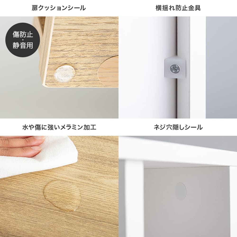 | 素材 | パーティクルボード(メラミン貼り)、MDF(メラミン貼り) プラスティック |
