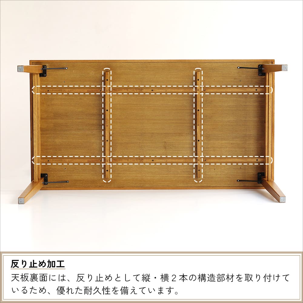 天板裏には反り止め加工が施され、長く快適に使える構造も魅力です。