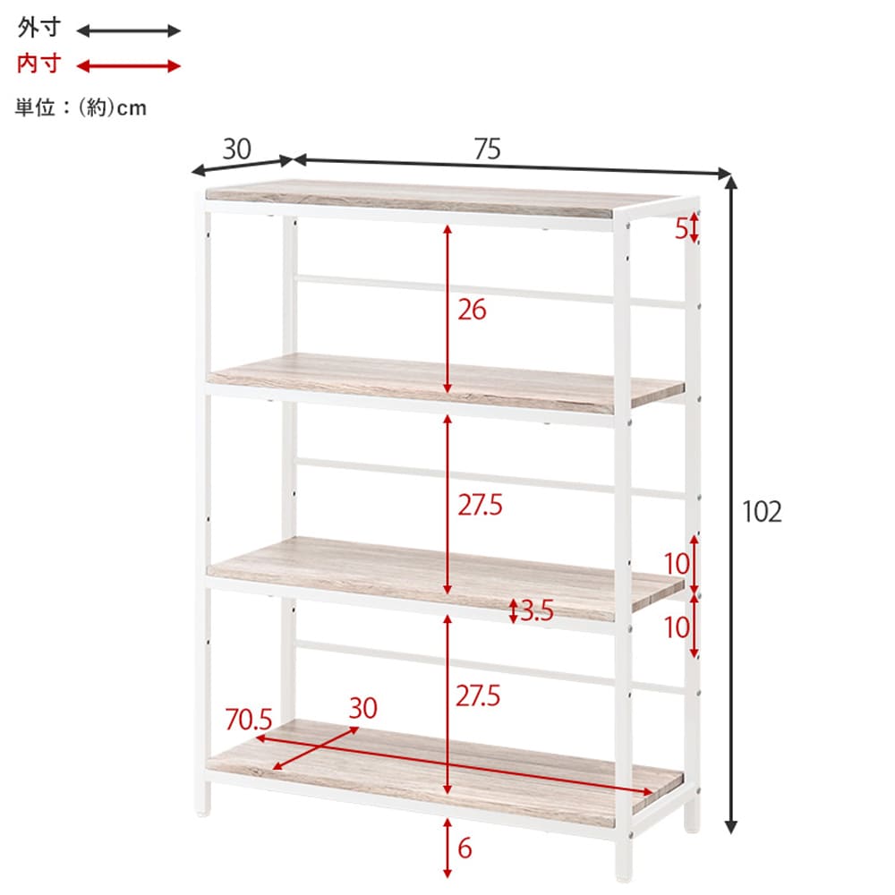 | サイズ(約) | ■本体サイズ 幅75cm×奥行30cm×高さ102cm |