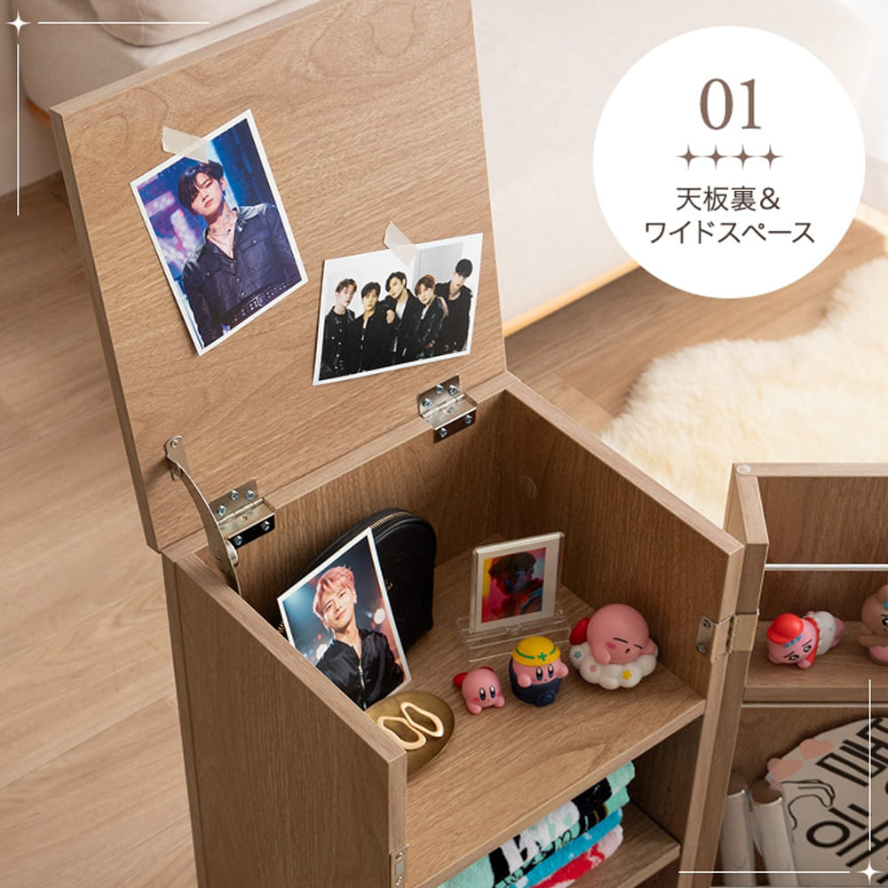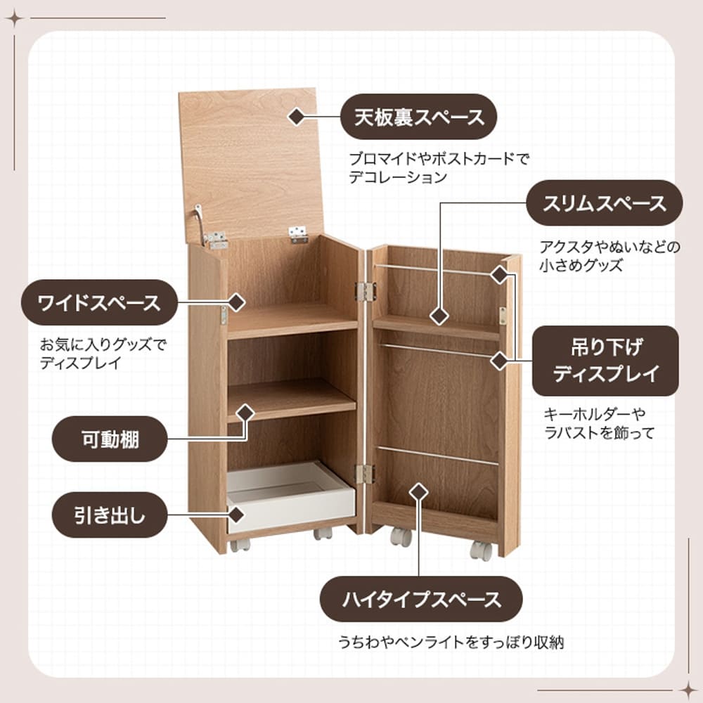 コンパクトな見た目ながら、推し活用に設計された収納スペースで、しっかり飾れてたっぷり収納。