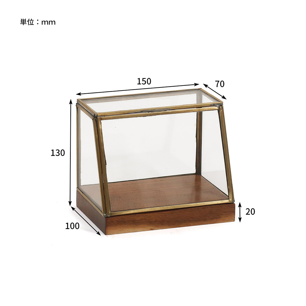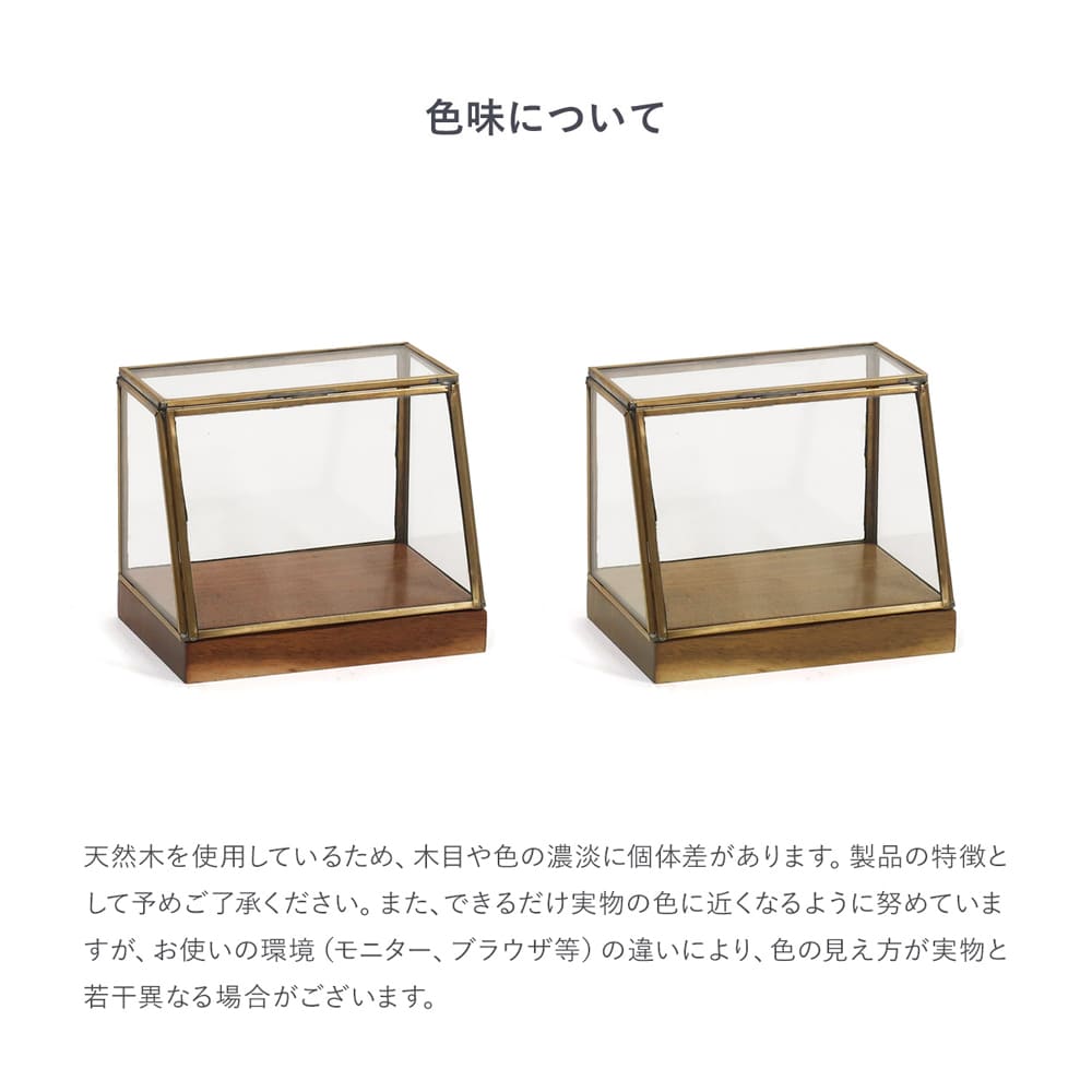 アンティークな雰囲気漂う『alten(アルテン)ブラスショーケース』は、ゴールド色の真鍮フレームとアカシア天然木の台座を組み合わせた上品なデザイン。