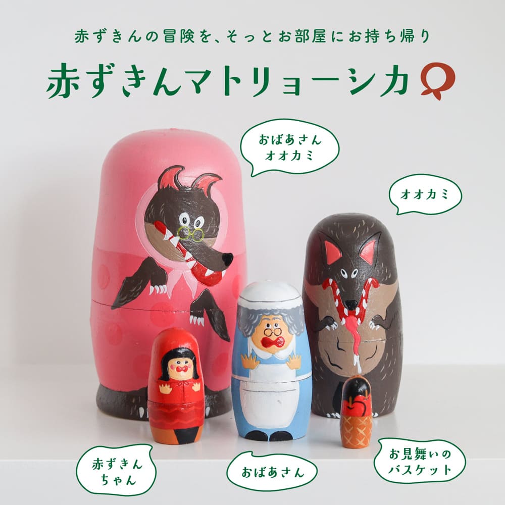 世界中で愛される童話「赤ずきん」が、あたたかみある木製マトリョーシカになって登場。
