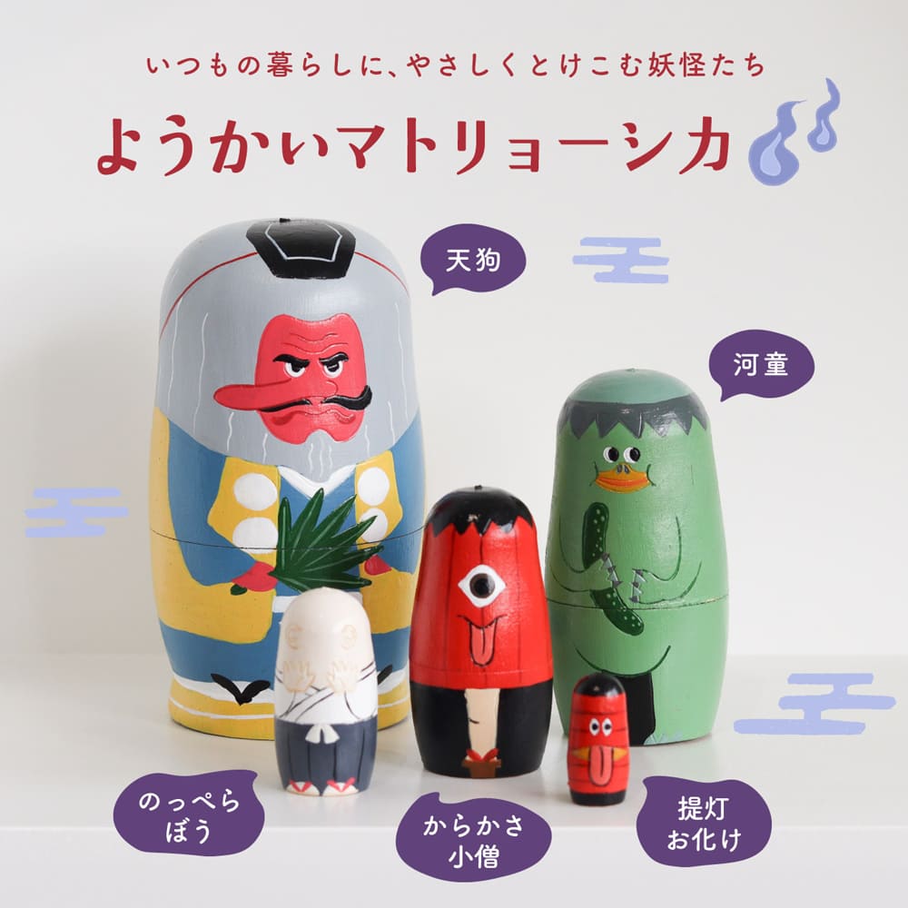 天狗や河童、のっぺらぼうなど、日本の懐かしい妖怪たちがマトリョーシカに変身!