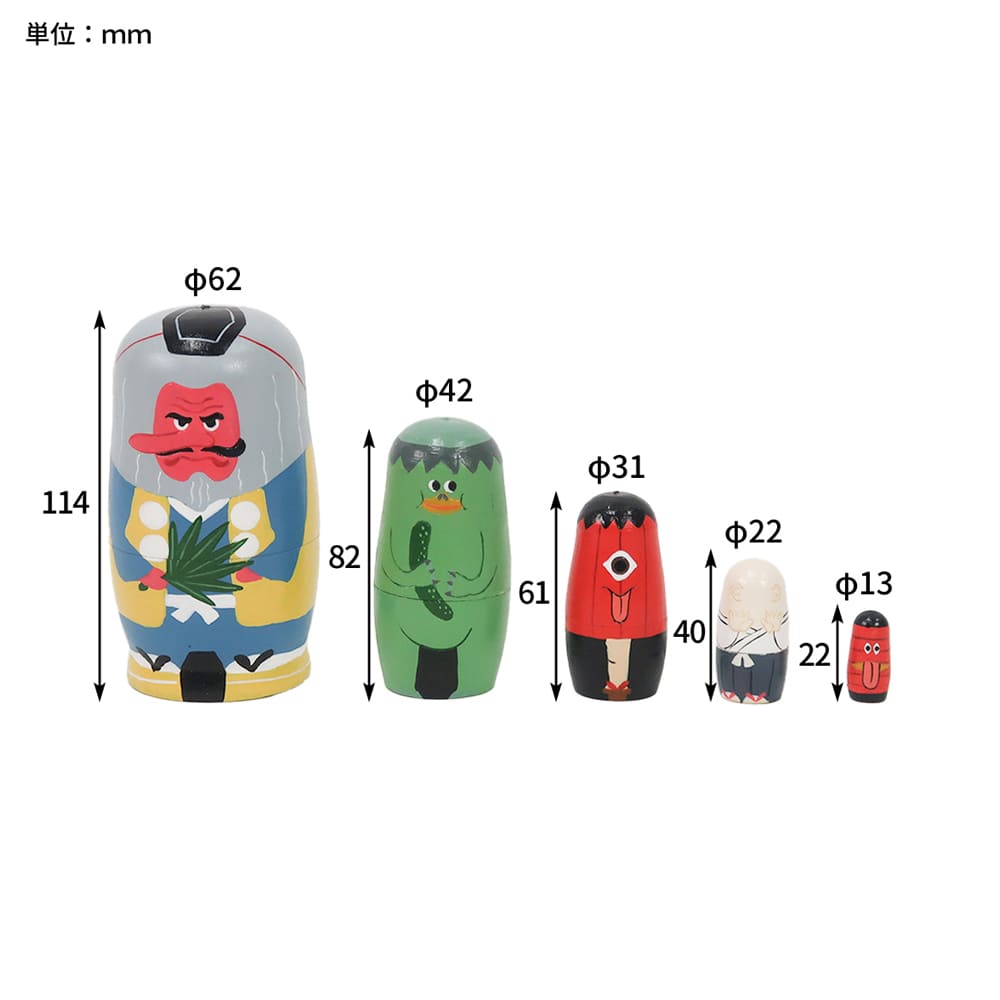 日本の昔話や伝承でおなじみの妖怪たちが、木製マトリョーシカになって登場。