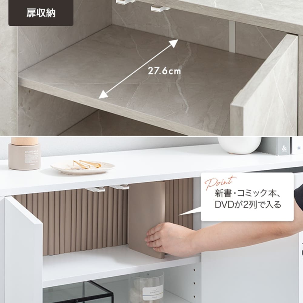 新書やコミック本が前後2列で入る、たっぷり奥行き