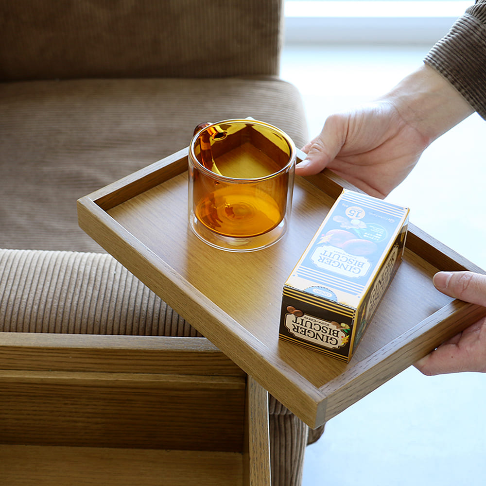 トレー付きで、飲み物やお菓子を運ぶのにも便利。