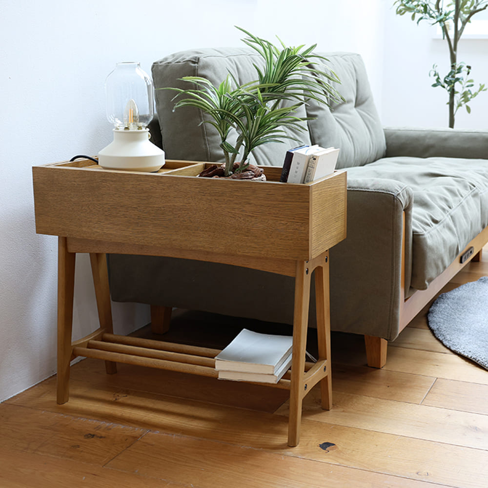 | 素材 | BOX側板:天然木化粧繊維板(オーク材) BOX底板・トレー底板:合成樹脂化粧繊維板 トレー側板:天然木(オーク材) 脚・幕板・棚:天然木(ラバーウッド材) ラッカー塗装 |