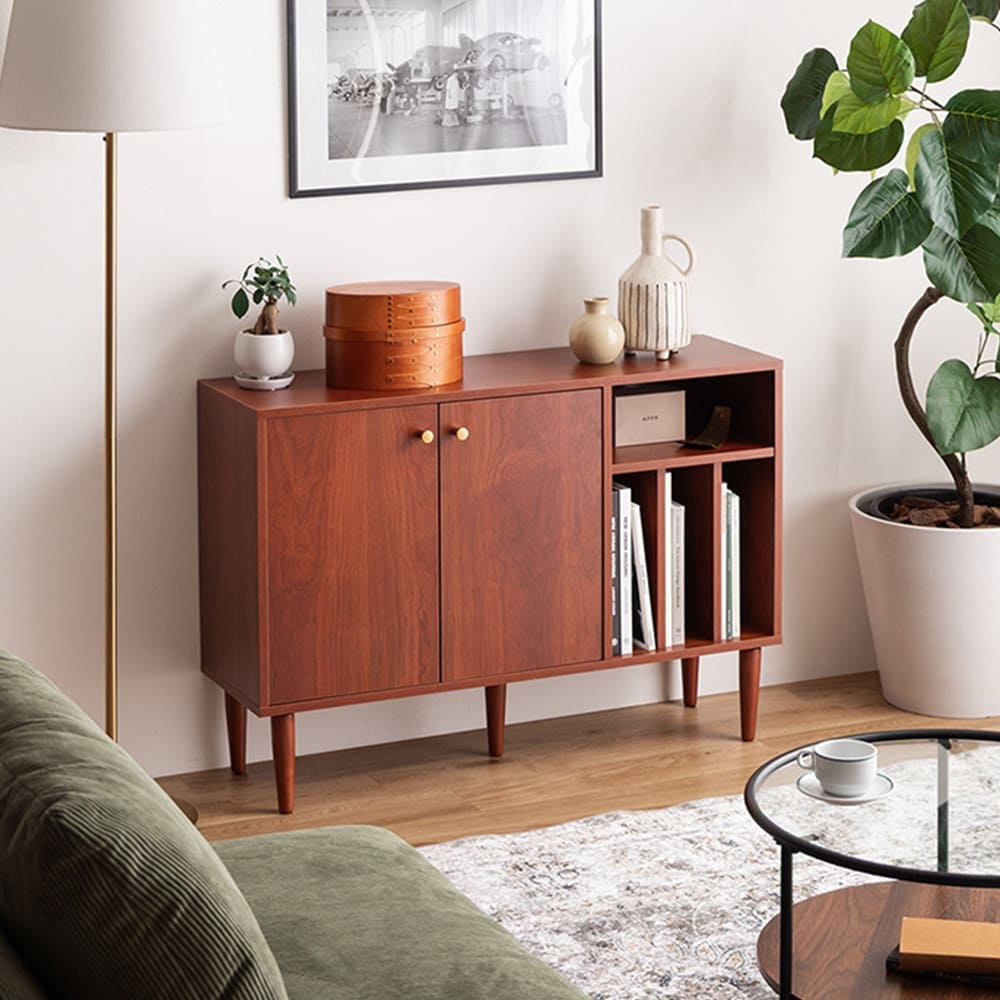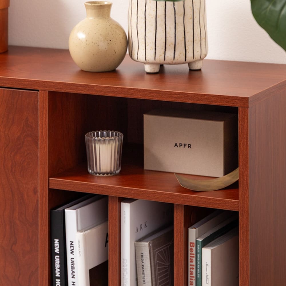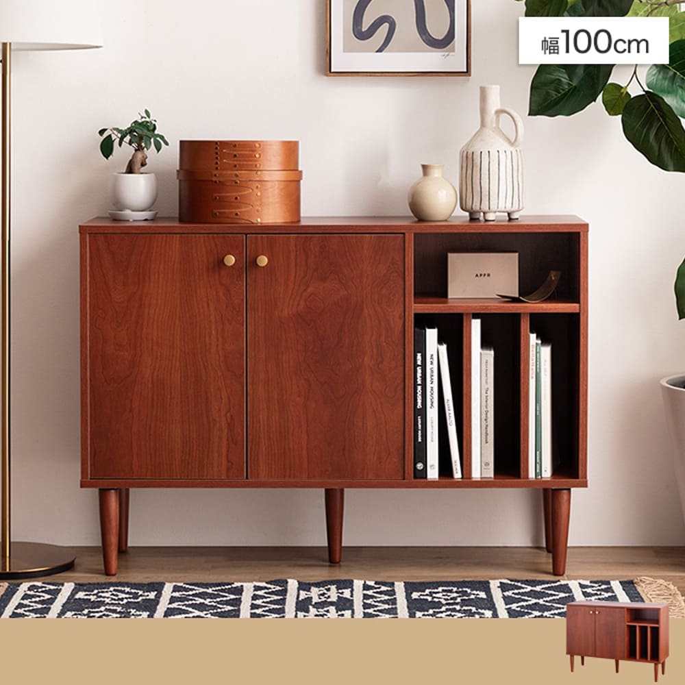 深みのある木目調が上質な空気をつくる、幅100cmの本棚付きキャビネットPrime(プライム)。