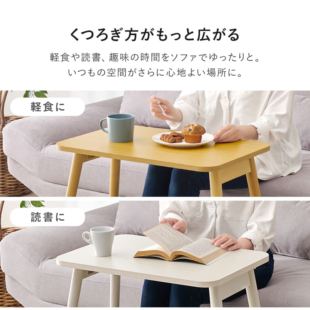 パソコン作業や読書、軽食まで、毎日のリビング時間がぐっと楽になります。