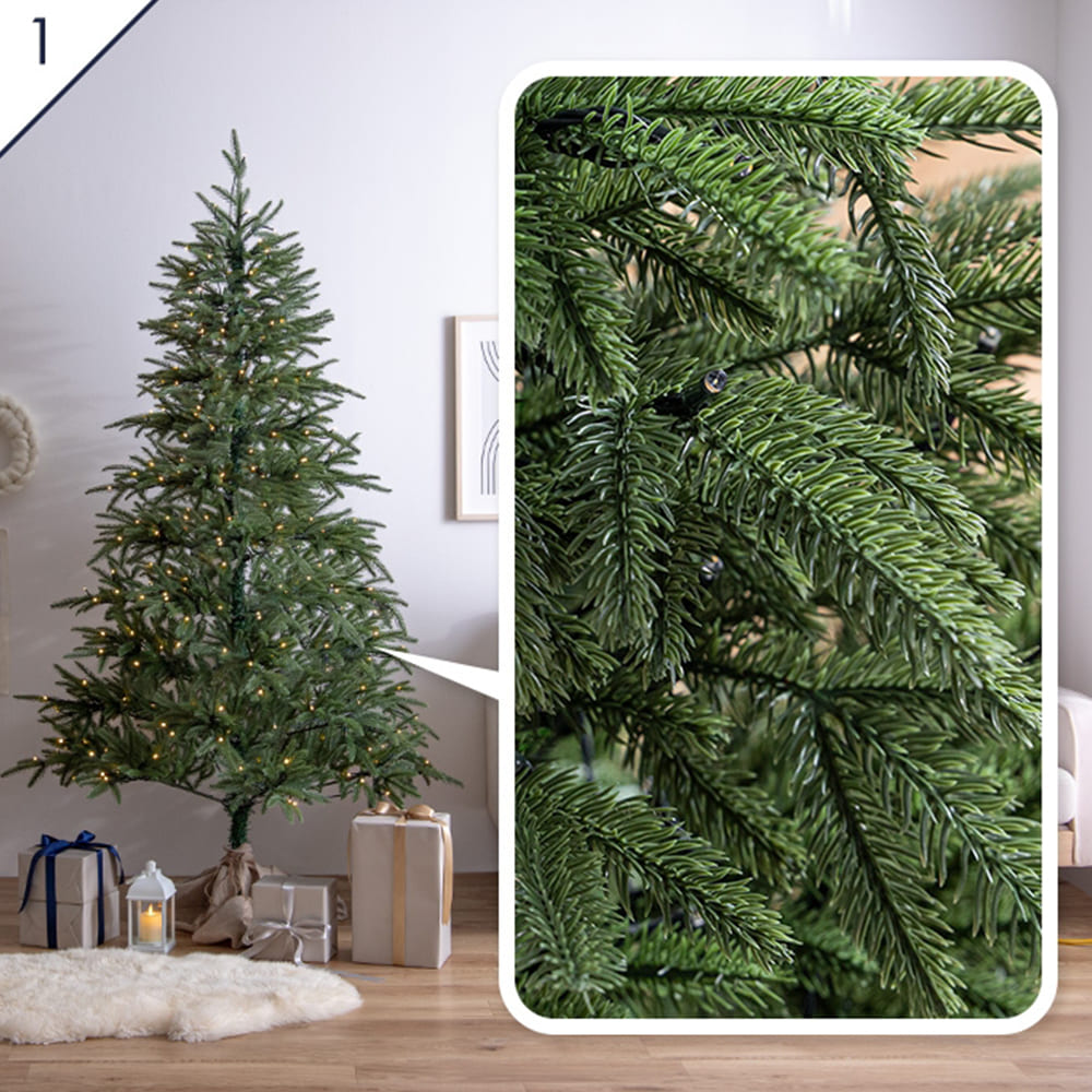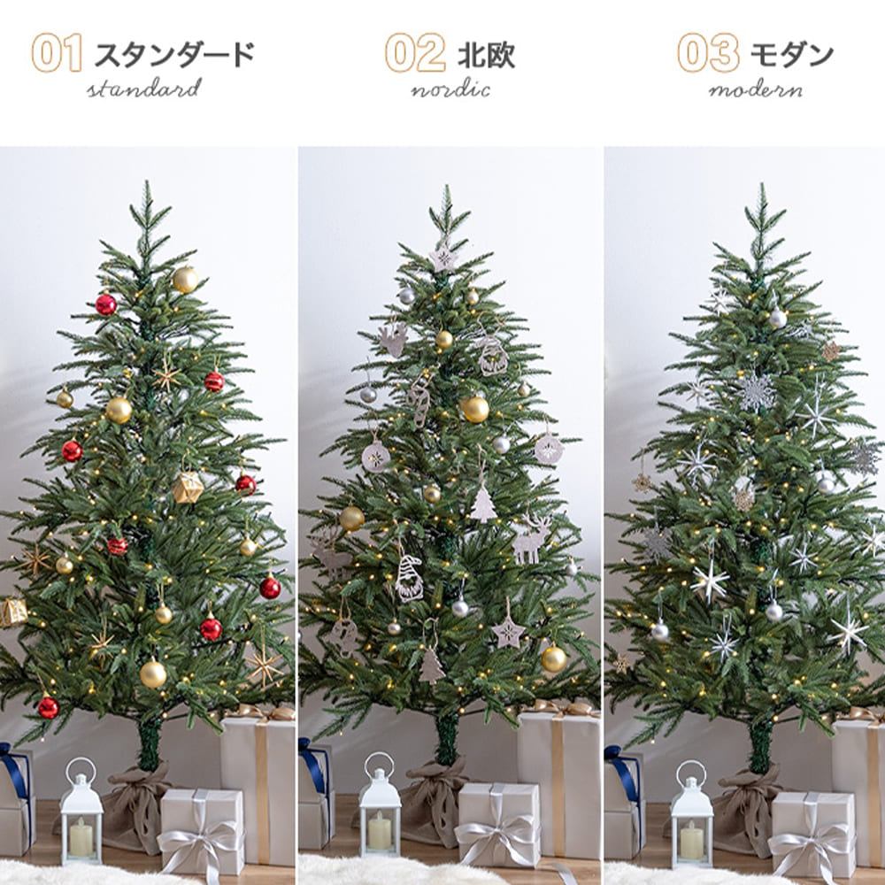 本場ヨーロッパのツリーを思わせるクリスマスツリーは、枝葉の細かな表情まで丁寧に再現した上質なデザイン。