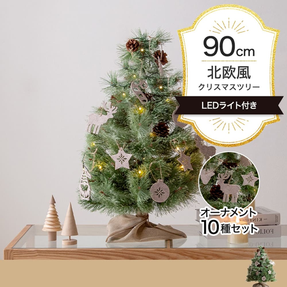 やさしく輝くLEDライトと天然松ぼっくりが付属し、届いたその日から北欧風の温かいクリスマス空間を楽しめます。