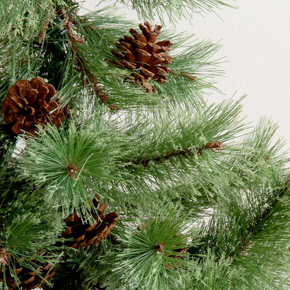 天然松ぼっくりはツリー全体の高級感をさらに引き立て、ひとつひとつ異なる自然な表情を楽しめるのも魅力です。